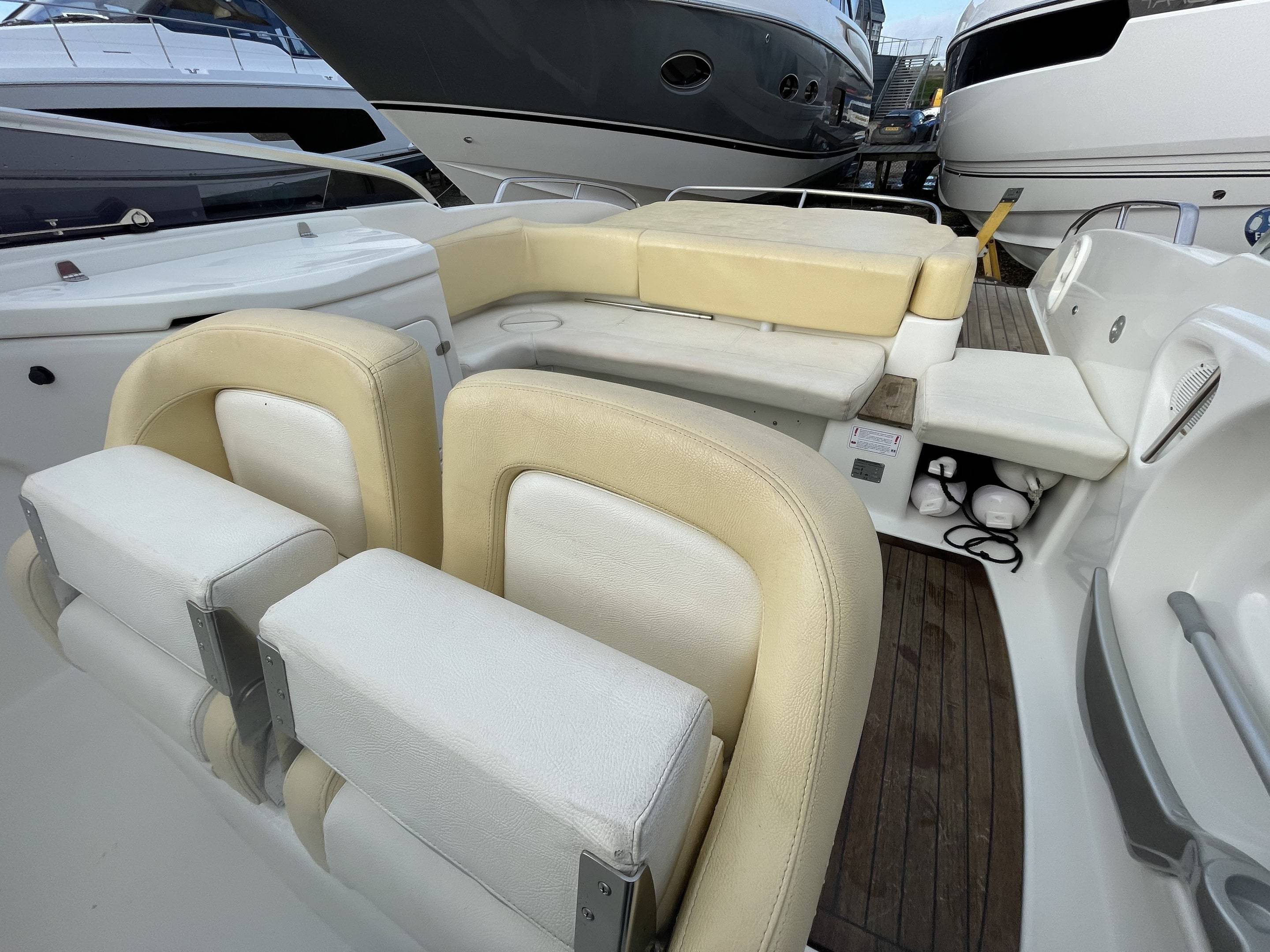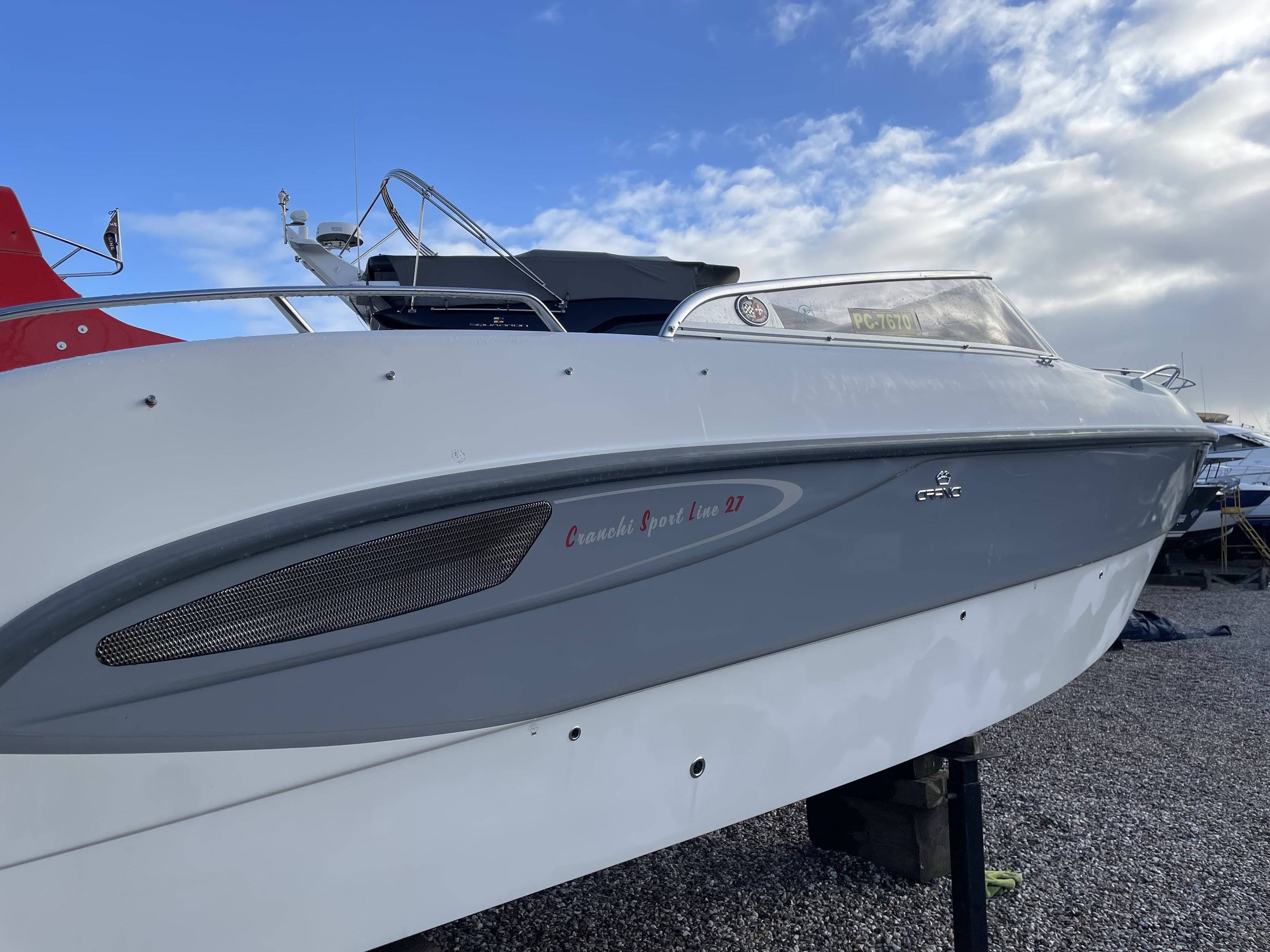 2007 Cranchi 27 CSL with twin Volvo Penta 4.3 GXi petrol engines and stern drives. Ideal for coastal cruising, water sports, and entertaining, featuring a swim platform with and a bimini top that converts to a canopy. This boat has a spacious, social cockpit with a wet bar, large aft sunbathing area. There is a small, practical cabin with a double berth and a marine toilet, making it suitable for overnight stays. With only 594 hours this will make a great first boat who wants to enjoy time on the water with family and friends. Contact Boats.co.uk to arrange a viewing +44 (0)1702 258885 or email: sales@boats.co.uk