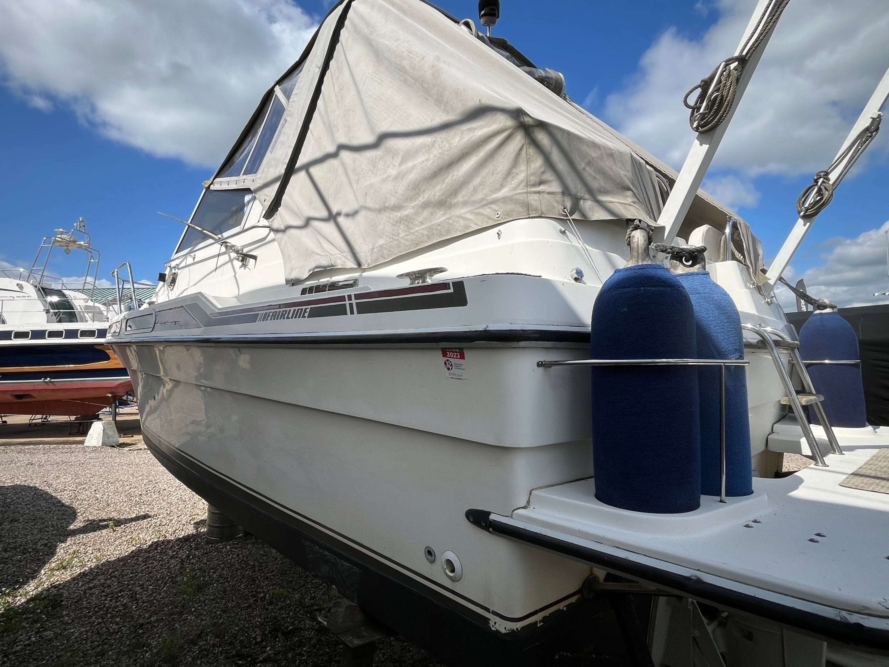 Boats.co.uk are pleased to offer this one owner 1989 Fairline Carrera 24. Fitted with twin Volvo Penta AQ151C petrol engines with approx 1100 hours use. Over the last 34 years this boat has been very well maintained (annually and as parts required). There are 34 years worth of invoices. Supplied in original condition and ready to go. Options to include Shore power | Battery | Battery Charger | Fire Extinguisher | Anchor | Bow Anchor Capstan | Bilge Pump | Navigation Lights | Sea Toilet | Water Pressure System | Warm Water System | Compass | Speed Instrument | Sink | Fridge | Cockpit Cover | Swim Ladder |Bathing platform | Deck Shower | Radio. For more information on this Carrera 24 please call Boats.co.uk on 01702 258885 or email sales@boats.co.uk