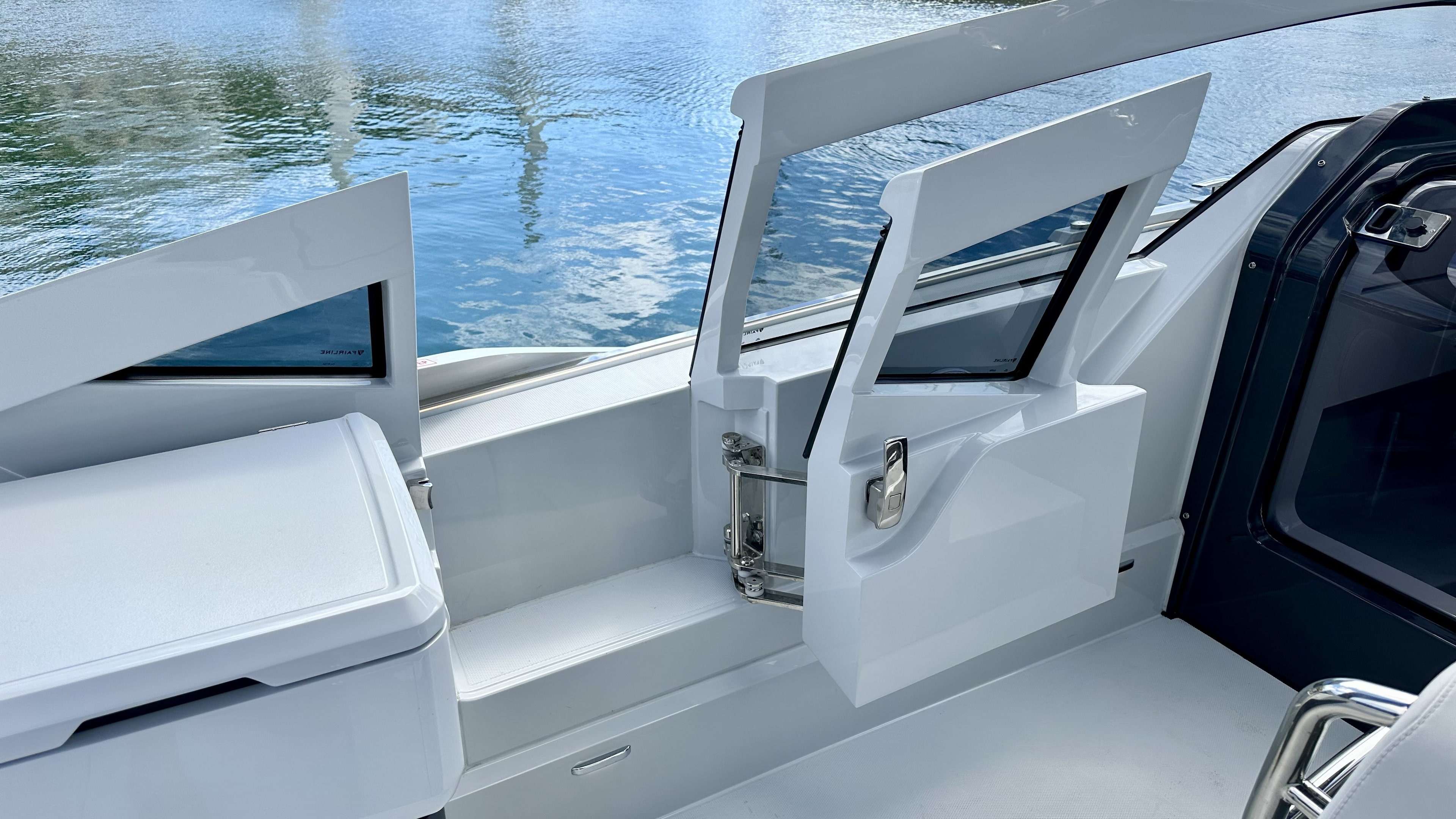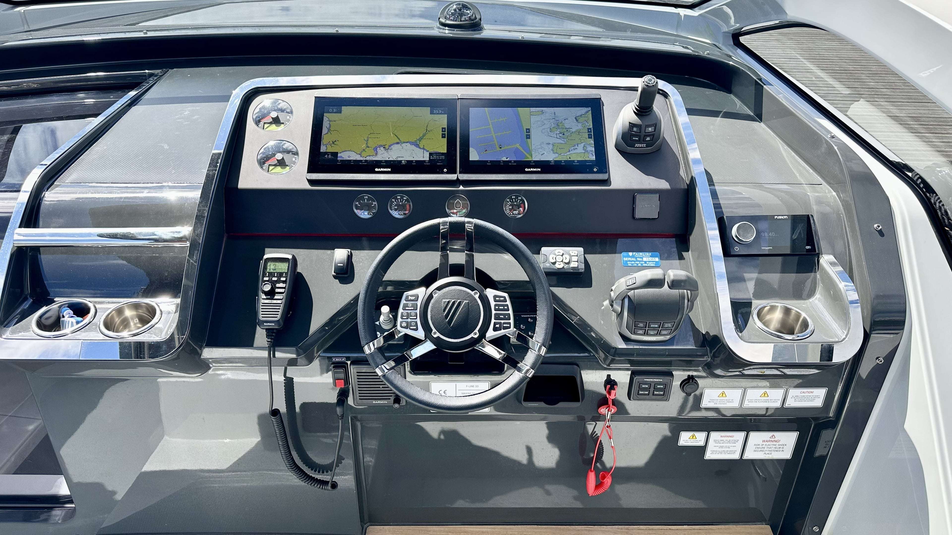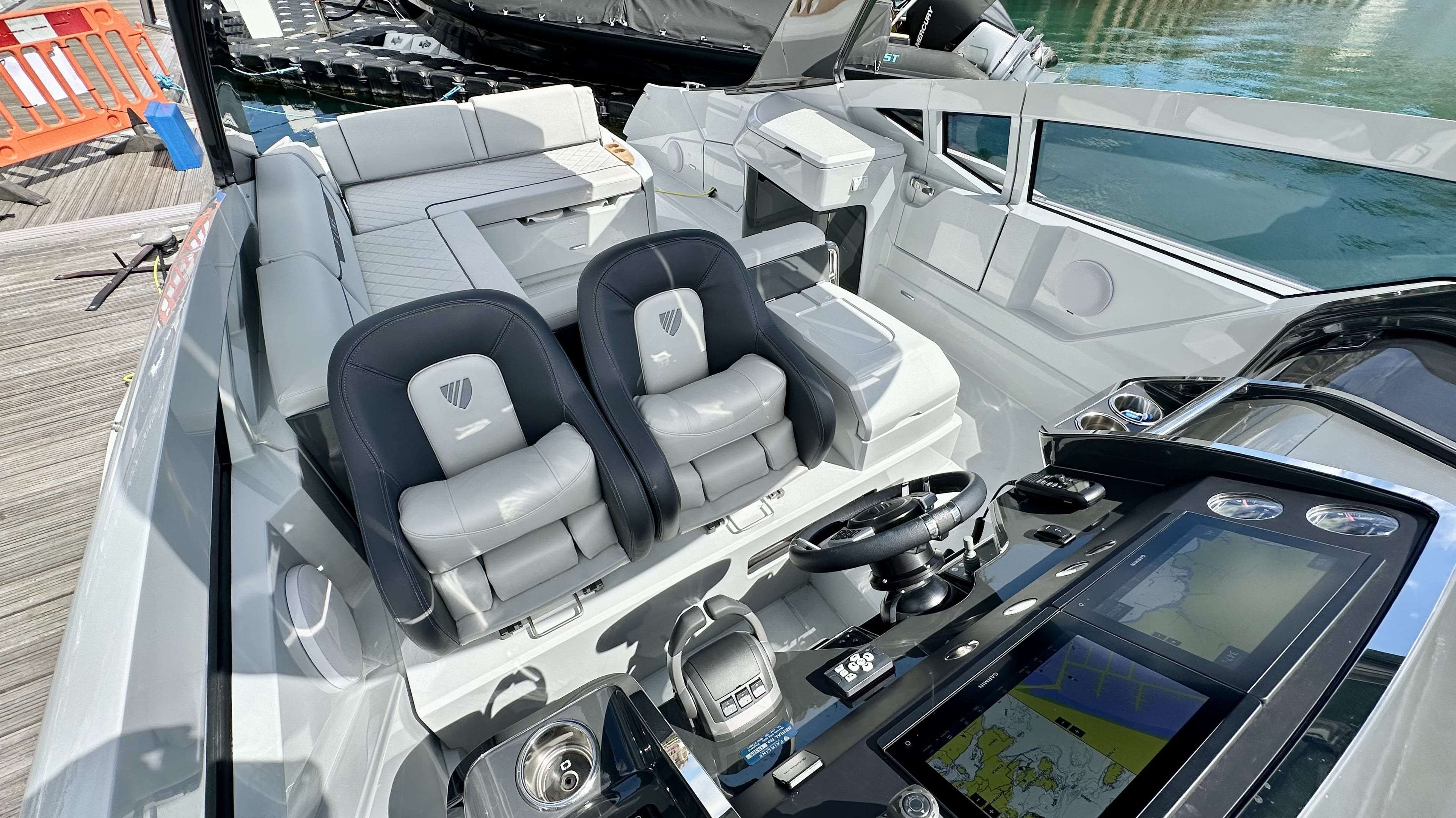 2023 Fairline F//Line 33 fitted with twin Volvo v8-430hp petrol engines - One owner with low hours use. A beautifully sculptured day boat with a nice selection of options to include twin Garmin 12″GPSMap Chartplotter Touchscreen Display To Helm // 32″ mirror TV with Apple TV, Fusion Apollo Audio & Speakers To Saloon // Anchor Upgrade; 30m of 8mm Stainless Steel Chain // Antifoul Black // Bed Conversion To Saloon With Manual Pedestal // Camera To Bow (Only Available With TV) // Exterior Mood Lighting: Transom, Side Decks & Illuminated F//Line Badge To Bow // External Upholstery Movida Aluminium/Graphite // Foredeck Sunbed Cushions With Cupholders & Cover // Fridge (42 litre) to saloon // Fridge, Electric Griddle To Cockpit Bar // Isotherm Drawer Ice Maker // Fusion PLUS audio With Additional Speakers, Subwoofer & Amplifier To Cockpit // Garmin 800(i) Automatic Identification System // Generator With Hydrohush Exhaust System // Hardtop With Mast & Ancillaries // Interior Mood Lighting; LED Light Panels To Saloon & Dimmer Switches // Joystick Control // Light Grey Hull Colour // Random Oak Saloon Flooring Dove Grey // Removable Front, Side & Back Panels To Hard Top // Saloon & Cabin flooring Paradise Hidden Cover // Saloon Sofa Wicker & Seely Leather // Teak Cockpit Table With Cantilever Pedestal For Stowaway // Teak To Cockpit Floor // Timber Walnut Gloss // Tonneau Cover // Underwater Transom Lights x2 (Dual Colour Blue / White) // Wireless Phone Charger To Helm - For more information please call Boats.co.uk on 01702 258885 or email sales@boats.co.uk