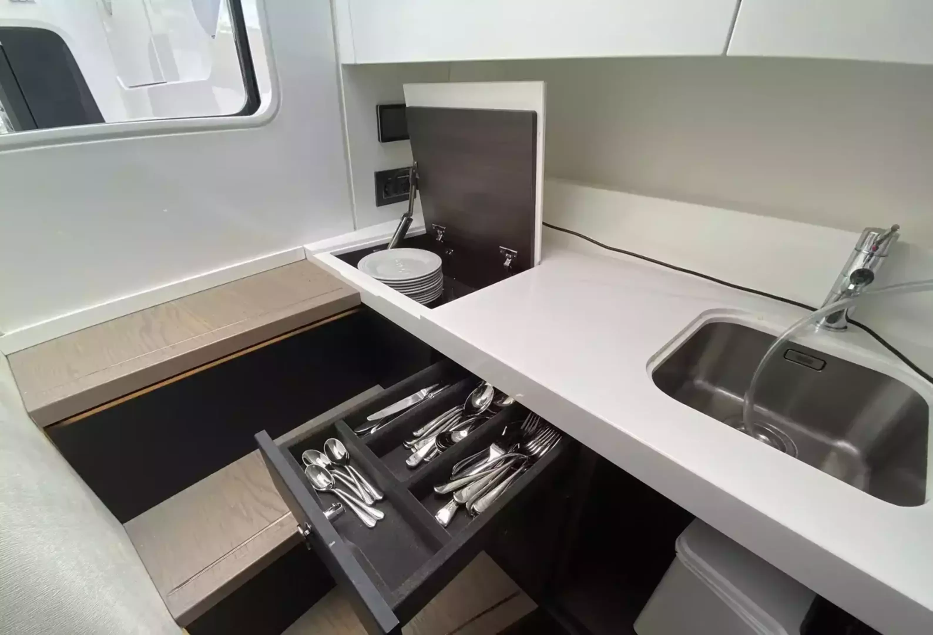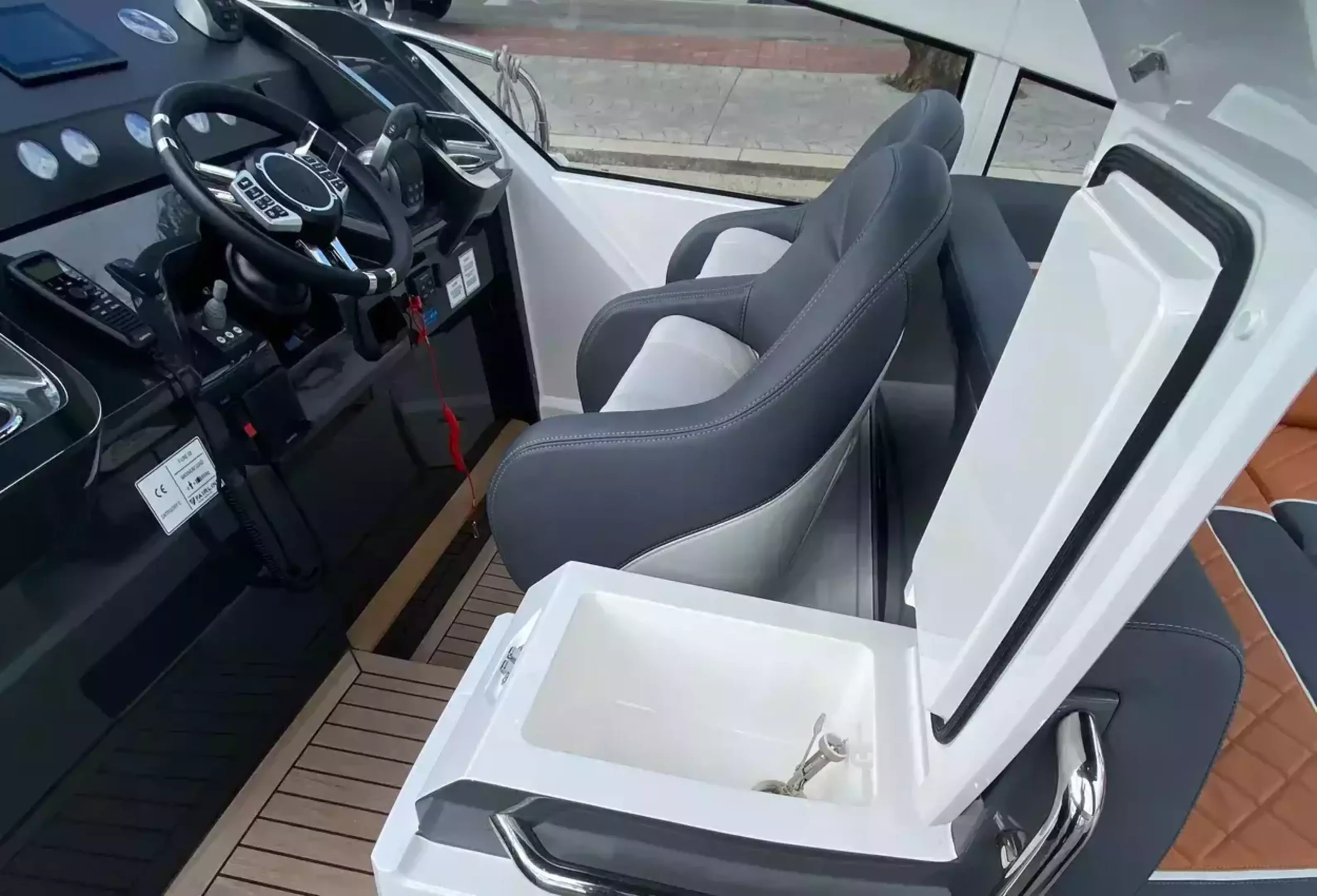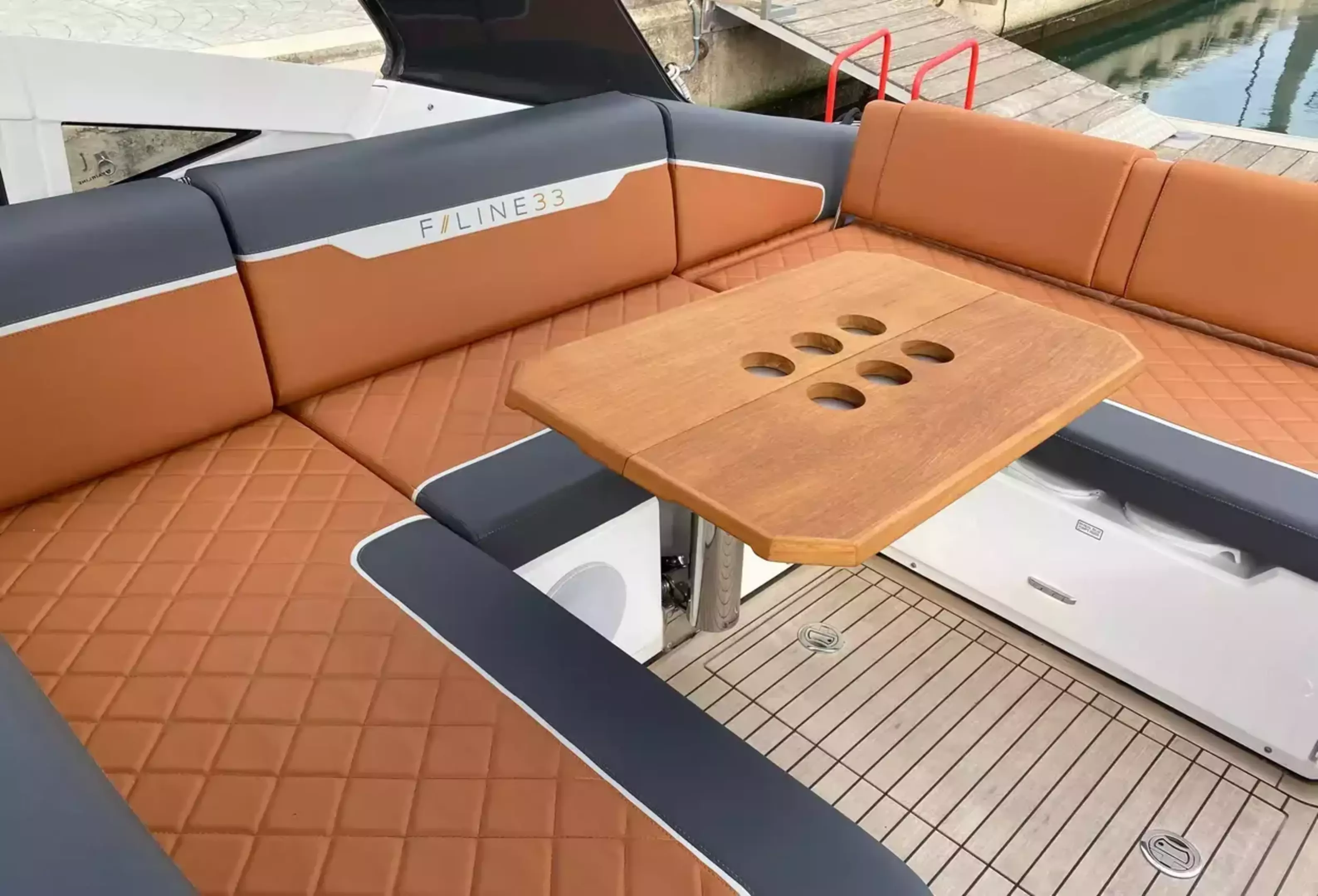 Boat Overview F//Line 33 with under 50 hours is now available, ex tax .With Manufactures warranty.Specifications & FeaturesFairline factory specification & fitted extras: Version 2 layout Hardtop to cockpit White exterior gel coat colour Black antifoul Bow thruster Joystick control Autopilot Wireless phone charger to helm