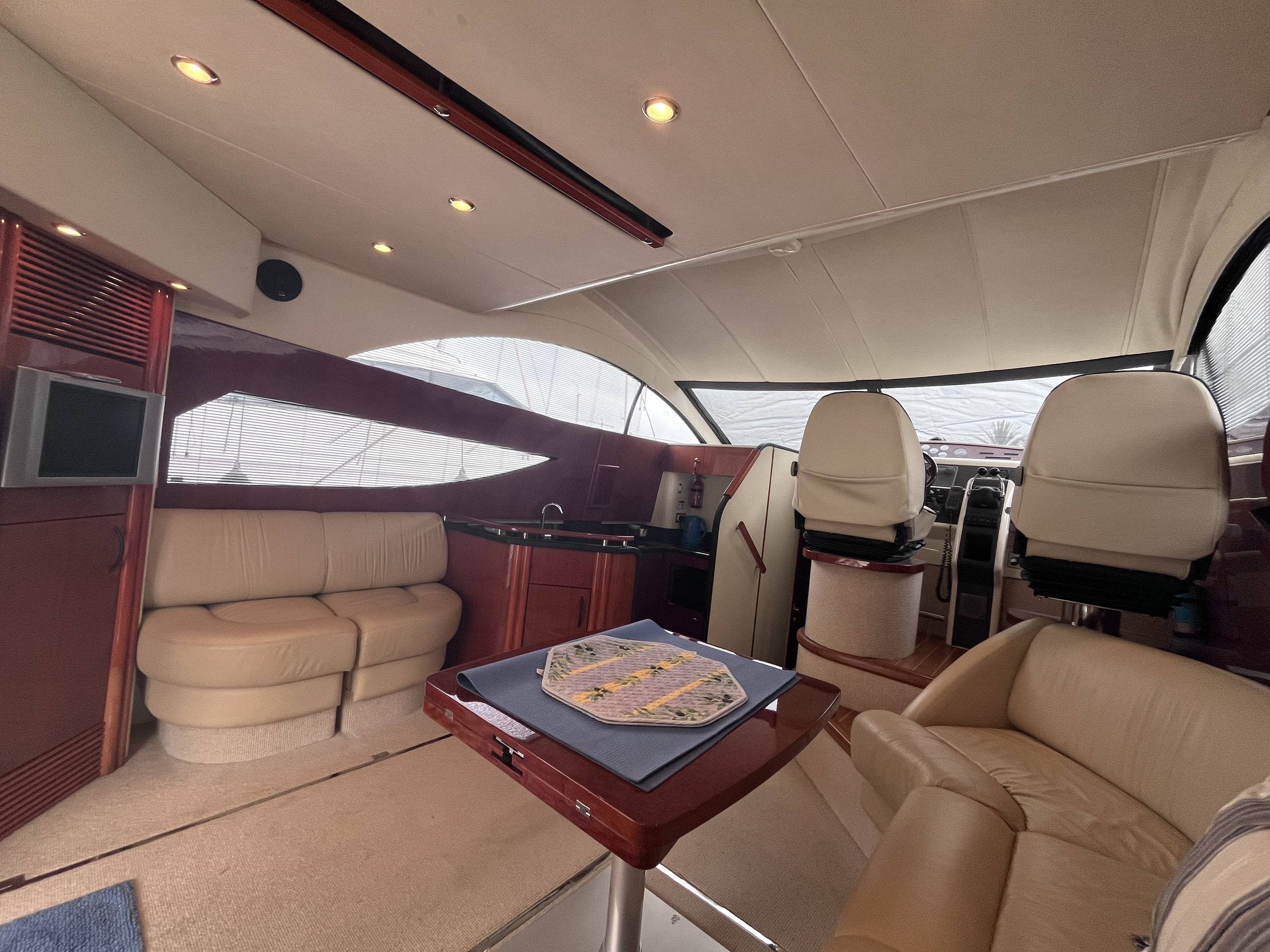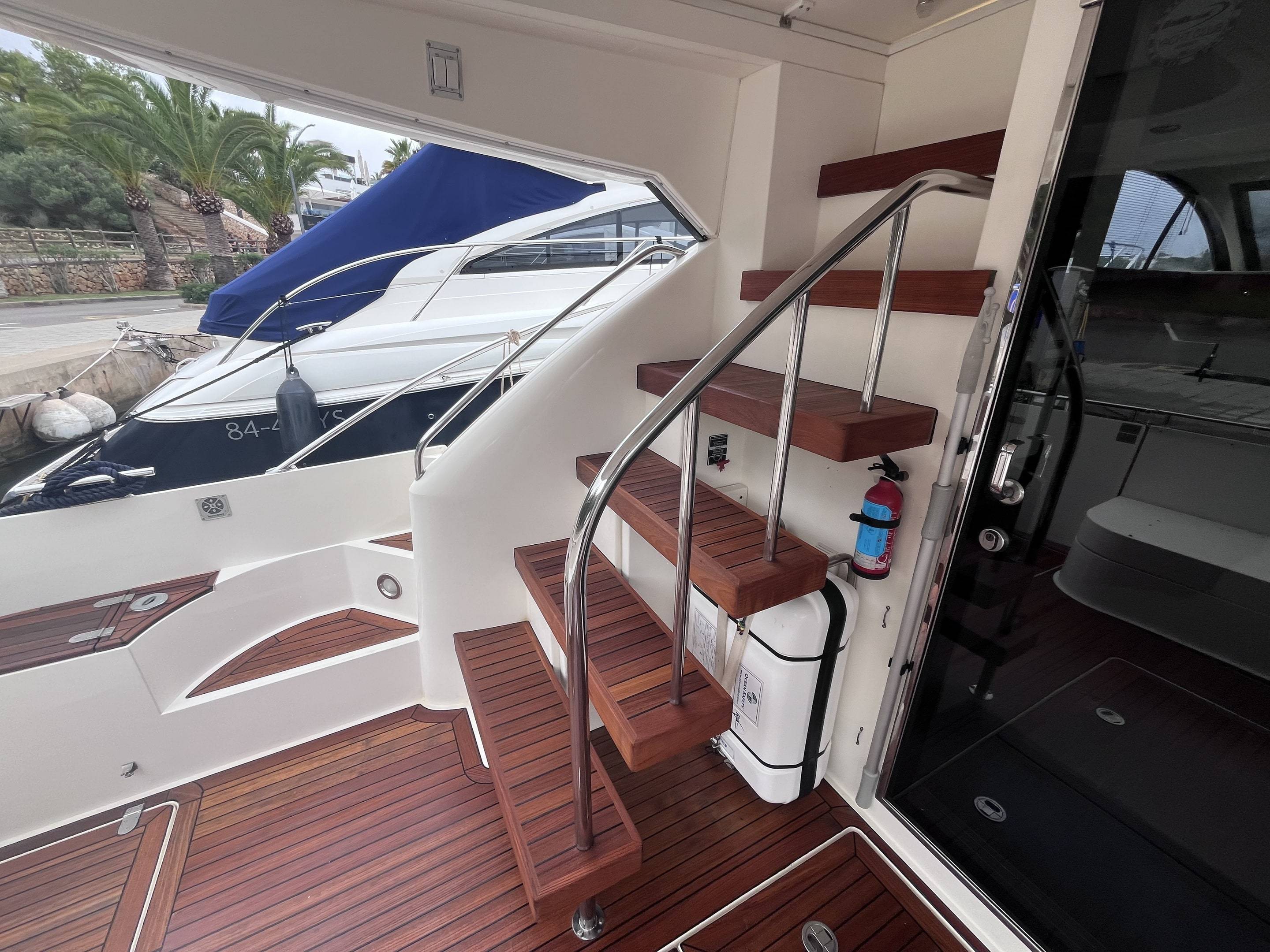 FOR SALE: 2004 Fairline Phantom 46 fitted with Twin Volvo TAMD 75P engines. Extras include: Upgraded Raymarine Navigational Equipment to upper helm including: Wind Vane, I70s screen plotter, p70Rs autopilot screen (2019) // Lower helm upgrades: Plotter to Axiom Pro-RVX-Real Vision 3D Sonar (2019) // 2 3D Transducers under hull (2019) // Under water lights x5 // Raymarine Quantum 2 Q24D radar (2019) // Bow Thruster // Onan Generator // Air-Conditioning // Crew Cabin // Hydraulic Passerelle // Bimini // Cherry Gloss Interior Re upholstered lower helm seats (2022) // New winter covers: windows, flybridge and cockpit (2022) // Stuffing boxes on both shafts replaced // Fire suppression system for engine room up-dated (2022) // Upgraded Raymarine VHF // TV to saloon // Fridge to Saloon and Galley // 2 burner electric hob // Sharp microwave/cooker combination // Teak Platform and Cockpit // Service history and full superstructure polish in December 2024. Currently located in Cala d'Or Mallorca. If you are interested please contact Boats.co.uk by email: sales@boats.co.uk or call: +44 (0)1702 258885.