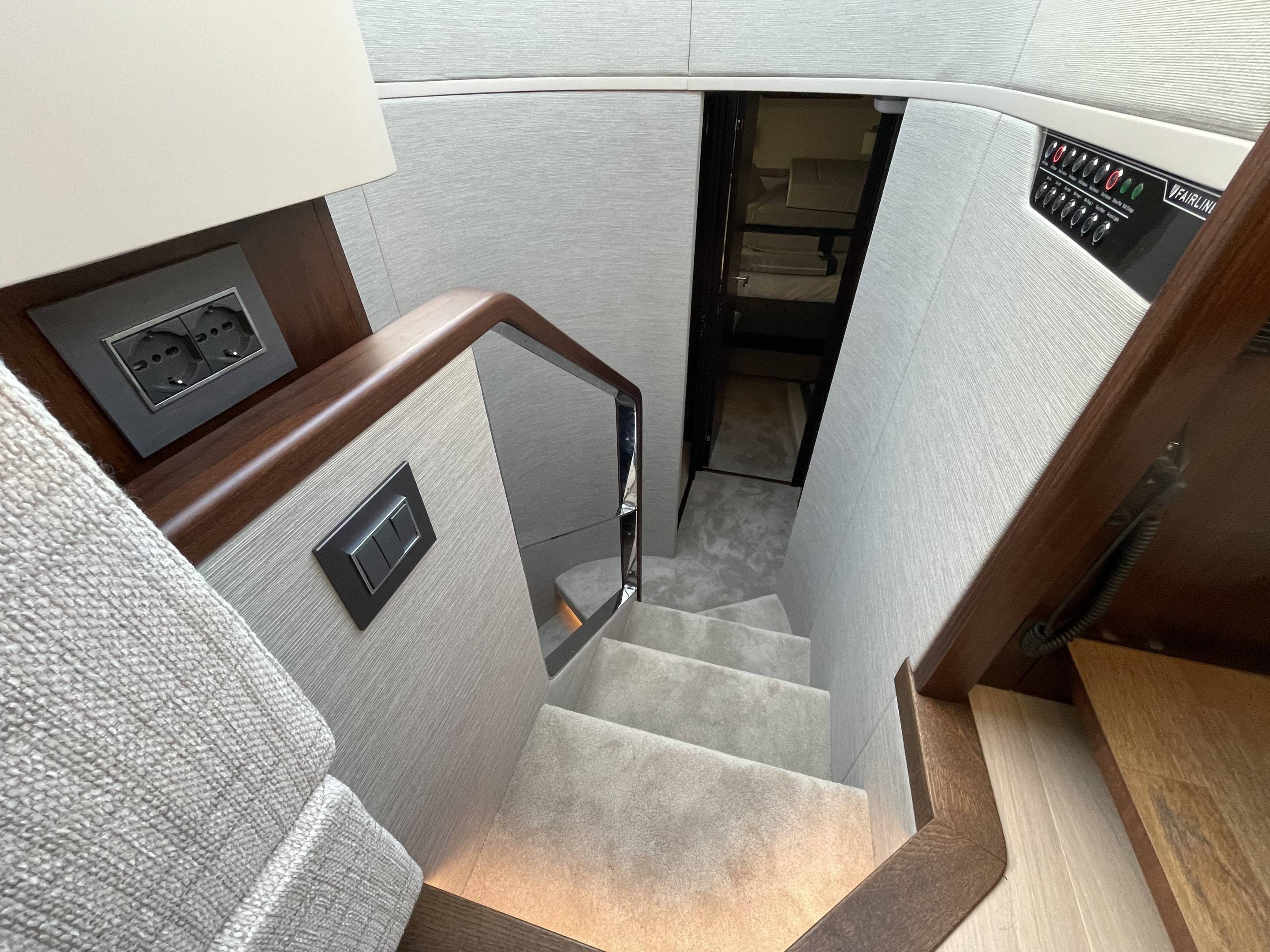 *** New 2025 Fairline Squadron 58 *** Available for immediate delivery - this beautiful boat has the desirable options which includes the extended Hard Top with electric sunroof and electric retractable sun awning, the "Beach Club" option that incorporates the amazing double hydraulic fold down side balconies, cockpit bar with bar stools and drop down windows, modular cockpit furniture, glazed transom and BBQ, "Hide & Slide" submersible swim platform. 3 cabins for 6 berths and crew cabin for 1. The engine set up is the upgraded Twin Volvo Penta D13 diesels with 1000HP and shaft drives providing a top speed of 33-35 knots. / Bow & Stern thrusters / Trim tabs / Garmin 16" Plotters to lower and flybridge helms / Generator / Reverse cycle air conditioning / "Walnut Satin" interior wood finish / Galley with full appliances / Flybridge wetbar / Icemaker / Watermaker / Teak to flybridge, cockpit, side decks and foredeck / Teak cockpit table / Teak flyfbridge table. With many other special features, this really is the perfect family flybridge motoryacht that impresses throughout with its amazing accommodation inside and out. Contact Boats.co.uk for more information on +44 (0)1702 258885 or email: sales@boats.co.uk