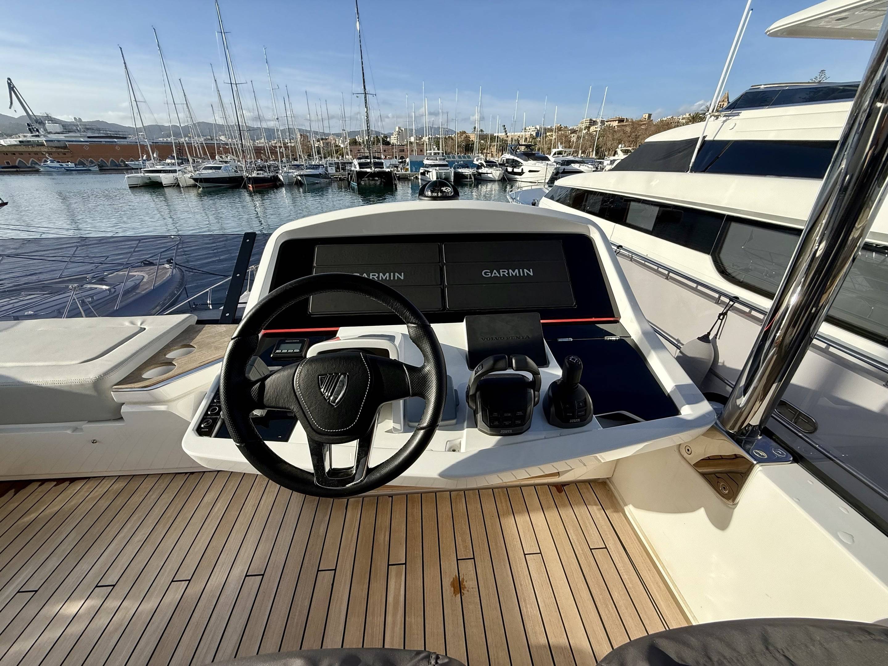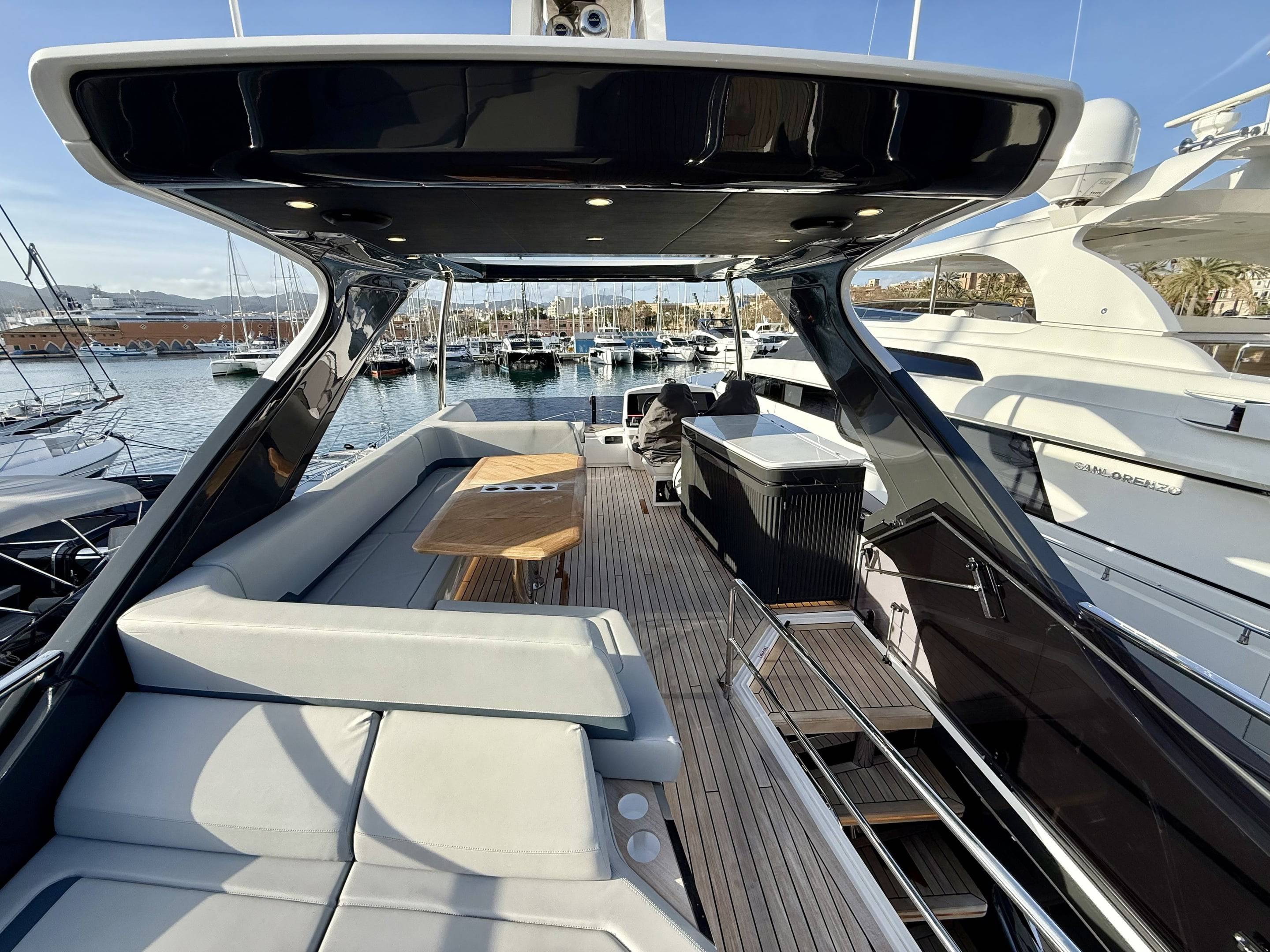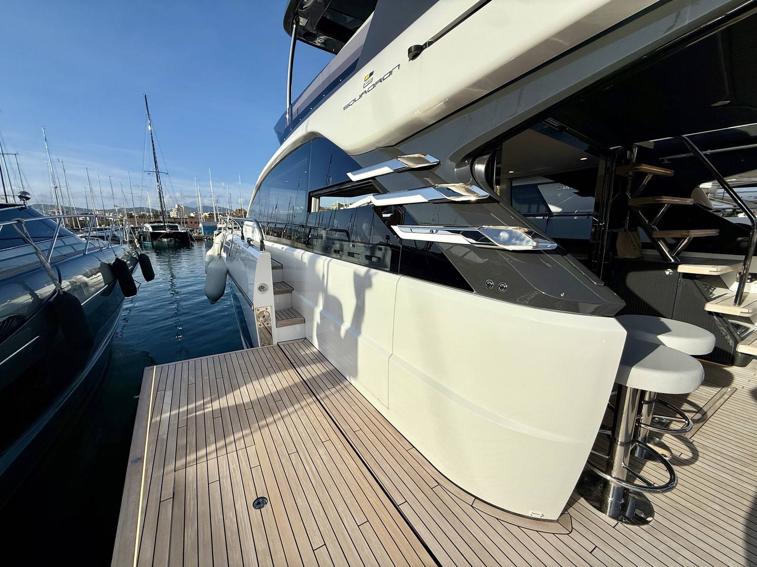 Welcoming a new to market LIKE NEW CONDITION 2025 Fairline Squadron 58: Fitted with twin Volvo Penta D13-100hp engines, currently running with just 240 hours. This is an extremely high specification including the top end interior finishes and all the technology too. The long list of additional options include: Gyroscopic Stabiliser / Hide and slide platform / Hydraulic passerelle / Beach club balconies, Modula furniture, glass transom and electric BBQ/Sink to aft / Flybridge hard top with integrated sliding roof / White LED mood lighting throughout / Underwater lights / Electric adjusting cockpit table / Crew cabin / Third control station / Fusion audio surround sound system / Stainless steel ultra anchor upgrade / Twin Garmin plotters to both helms / Joystick control / Humphries automatic trim tabs / Saloon drop down windows to galley area and forward saloon / Satin walnut interior wood / Deep pile cream carpets / Additional sideboard to saloon in lieu of sofa / Smart TVs to saloon and all guests cabins and the list is endless. This is one of the nicest colour pallet specifications chosen to the market and a full specification with all the technical upgrades included. A fantastic opportunity to own one of the first second hand 58's still with warranty on the market and in Like new condition! Contact BoatsCo today for all the details and to arrange a viewing.