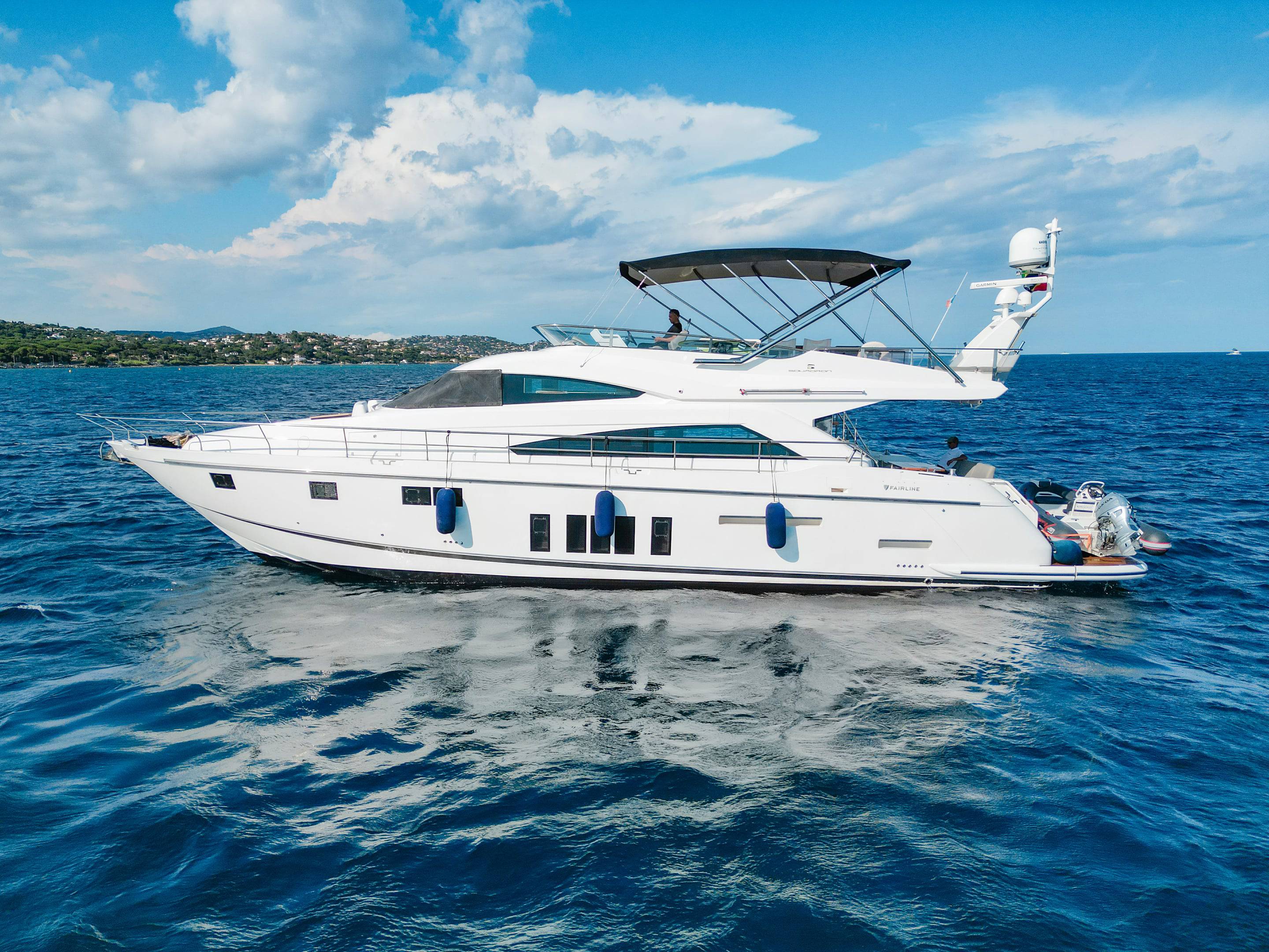 A wonderful example of a 1 owner, High specification 2015 Fairline Squadron 65 fitted with twin Caterpillar C18-1150hp engines currently running with approximately 1400 engine hours. This particular model has all the options along with a lot of cosmetic and system upgrades over the years. The highlights include: Seakeeper gyroscopic stabiliser / Hydraulic bathing platform / Hydraulic passerelle / Hydraulic bow & stern thrusters / Stern docking winches to aft / Under water lights / Teak laid throughout the exterior / Coolbox to cockpit aft seating / Cummins Onan generator / Water maker 175lph / Full Garmin navigation equipment / Twin chart plotters to both helms / Wetbar to fly with fridge, icemaker, griddle and sink / Blue Bimini to fly / Custom built bow cushions with head rests / Fusion audio throughout / Smart televisions / Galley: Custom full height fridge freezer, dishwasher, 4 burner hob, sink and more storage / Washer dryer / Walnut wood interior with satin finish / 4 very plush and spacious guest cabins / Crew cabin with twin singles to aft and the list goes on. This boat has all the options ticked and displayed in brilliant condition. The highfield tender with a 50hp Honda outboard is also included in the price! She is EU Tax Paid and ready to go! Contact us today for all the details... and a wonderful montage video. (Internal Pictures Coming Soon...)