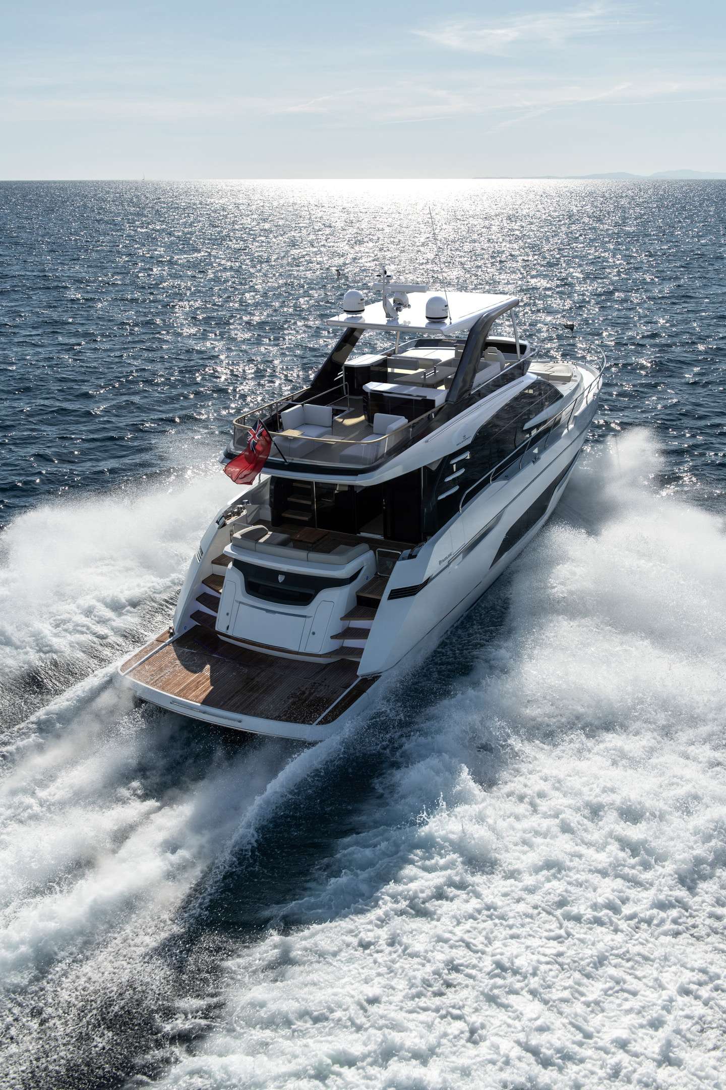 Standard specification of 2023 Fairline Squadron 68 - Deck: Anchor chain locker / Anchor winch / Anchor winch controls / Bathing platform ladder / Black mesh windscreen cover / Calibrated galvanised anchor chain (12mm, 80m) / Carbon fibre ensign staff / Deck wash outlets / Fender (x8) / Foredeck cup holders / Foredeck seating & sunbeds / Foredeck stowage lockers / Fuel fillers / Full set of IMCO / navigation lights / Hot & cold-water transom shower / Moulded non-slip deck surface / Remote control search light / Riding light / Self-stowing Delta ® galvanised anchor(40kg) / Stainless steel bow, spring & stern cleats / Stainless steel bow fairleads / Stainless steel handrails / Stainless steel pulpit / Teak laid bathing platform / Stainless steel transom gates / Twin horns / Water filler / Windscreen washers / Windscreen wipers / Lower Helm: USB socket / Adjustable/tilt steering wheel / Bilge pump switches with integral operating warning lights & audible alarms / Bow thruster controls / Controls for engine bay fire extinguisher system / Drinks holders / Electronic single-lever throttle & gear controls for port & starboard engines / Glass Bridge incorporating full engine instrumentation; tachometers, fuel gauges, temperature gauges, audible alarms & rudder position indicator / High speed magnetic compass / f-Drive multifunction display / Garmin 16' digital multi-function colour display / Garmin autopilot / Garmin VHF marine radio / Garmin tri-data display / Opening window / Powered steering / Remote anchor winch controls / Search light controls / Switches for navigation & riding lights / windscreen wipers & engine room extractor fans / Trim tab controls / Twin independent helm & co-pilot seats / Flybridge & Second Helm: 12V heavy duty weatherproof socket / Adjustable/tilt steering wheel / Adjustable bolstered helm seating / Bow thruster controls / Companion seating to helm / Aft facing seating & tables / Dedicated dining seating with dining table / Drinks holders / Electronic single lever the rattle & gear controls for port & starboard engines / Flybridge access hatch / Flybridge bar with refrigerator & sink / Flybridge covers / Fusion ® amplifier remote display & speakers / High speed magnetic compass / Moulded non-slip deck surface / Powered steering / Radar arch/mast / Remote anchor winch controls / Remote control searchlight / Repeat flybridge engine instrumentation, controls & electronics / Stainless steel handrails / Storage unit housing waste bin / Teak laid oversize flybridge steps / Teak table / Trim tab controls / USB socket / VHF radio incorporating intercom / Wind-deflecting screen with grab rail Foredeck: Recessed seating area with low level lighting / Seating and sunbed cushions with luft track fitting / Drinks holders / Tonneau cover / USB socket / Electrical Systems: 230 - 240V S0Hz / All 240V, 24V & 12V circuits (where applicable) protected by circuit breakers with main electrical load control panel / Dimmer switches / Fire shutdown system / Heavy duty circuit breakers / Isolating switches to all batteries / Onan ® 21.5 kW generator / 12 Volt / Voltage dropper from domestic batteries / 24 Volt / Batteries - 2 x heavy duty batteries exclusively for port engine starting / Batteries - 2 x heavy duty batteries exclusively for starboard engine starting / Batteries - 4 x heavy duty batteries wired in parallel supply for domestic services & port engine starting / Emergency battery coupling system permits each engine to start from opposite battery bank / 240 Volt / Isolation summation transformer / Polarity check & earth leakage protection system / Power points throughout the yacht (fed from shore power or generator) / Regulated 80amp charger for domestic batteries / Shore power supply / Spare circuit breakers for optional equipment / Cockpit: 12V heavy duty weatherproof socket / Access hatch to engine room / Blue LED lighting to cockpit / Boat hook / Deck level lighting / Drinks holders / Fender stowage / Flybridge steps / Flybridge access hatch / Fusion® RASO radio & remote control / Life raft stowage / Manual bilge pumps / Mooring lines & stowage / Teak laid floor throughout self-draining cockpit / USB socket / Interior Decor: Walnut Gloss / Hull form & Construction: Antifouling protection to hull / Bow thruster / Deep 'V' hull / Design, layout & detailing by AM Yacht Design and the Fairline Yachts Design Studio / Naval architecture by Vripack / Extended sound-proofing between engine room and accommodation / Feature windows with opening portholes / Moulded spray deflectors / Hull / deck joint bolted & bonded / Integrally moulded engine bearers / lsophthalic gel coat backed by isophthalic resin-rich powder-bound glass mat / Polyurethane foam cores throughout deck for strength &thermal insulation / Resin infused, cored hull & liner with hand laid deck & components / White hull / Saloon: 50" LCD TV / Fixed height dining table / Fusion ® audio with wireless connectivity / Drinks cabinets with 8 lead crystal tumblers / LED ceiling lights / Random oak / flooring / Sliding patio door to cockpit / Venetian blinds / Galley: Avonite ® worksurface / Chopping board to sink infill / Crockery stowage / Electric induction hob / Extractor fan / China dinner service & cutlery set {6 place settings) / Fire extinguisher / First aid kit / Fridge Freezer / Integrated waste bin / LED ceiling lights / Random oak floor / Stowage cupboards & drawers / Sink with hot & cold mixer tap / Lobby: Access to electrical control panel / Access to day head / Lighting to stair risers / Forward Cabin: Bedside tables / Double bed with storage drawers / Escape hatch to foredeck with blind / Feature windows with single opening porthole / Full length mirror / LED ceiling lights / Reading lights / Sprung mattress / Venetian blinds / Wardrobes / Forward En Suite: Avonite ® vanity unit with locker & basin with hot & cold pressurised water / Random Oak ® floor / Electric silent-flush freshwater toilet / Extractor fan