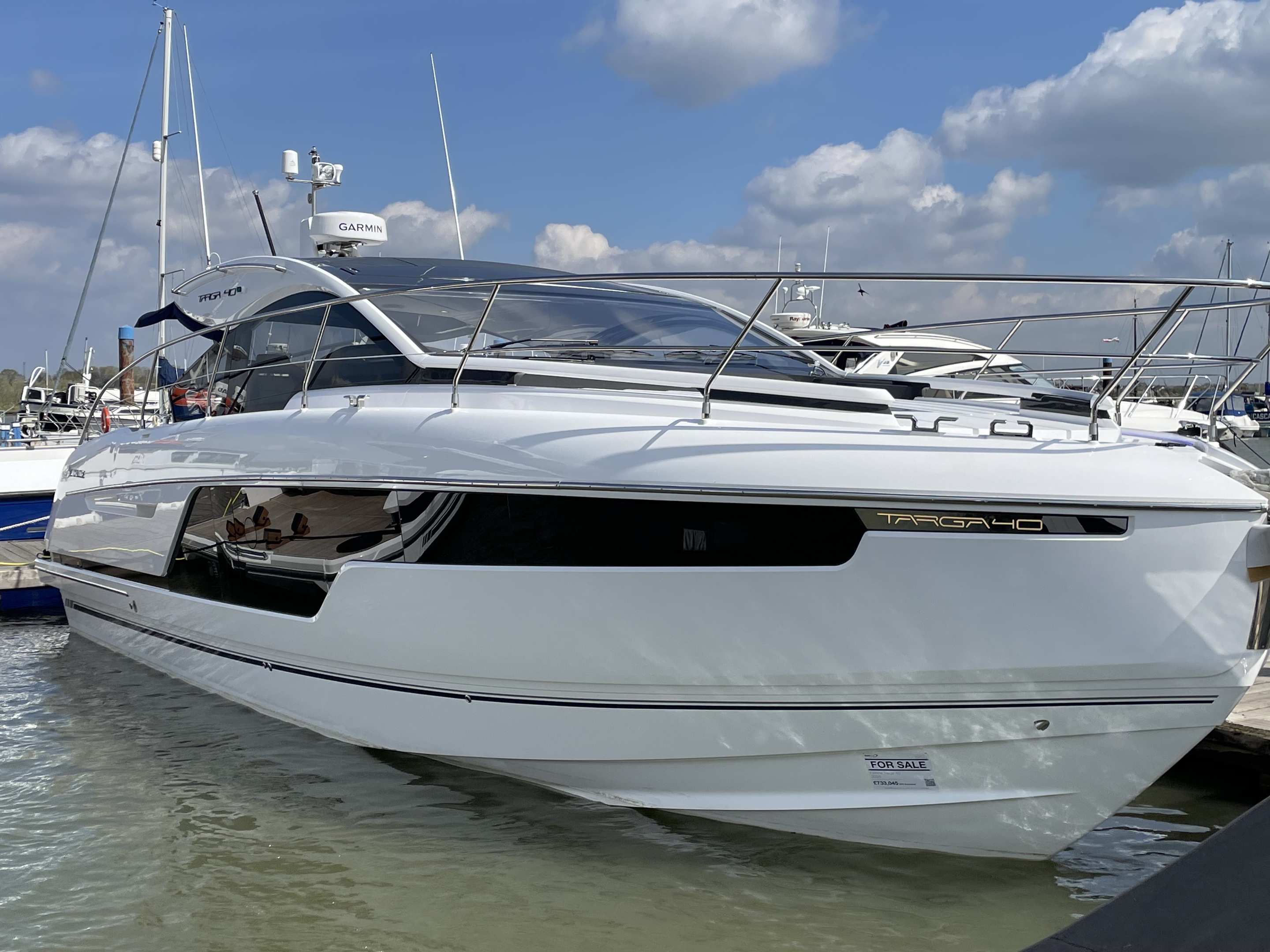 *** 2025 FAIRLINE TARGA 40 *** // Twin Volvo Penta D6 Diesels with 760HP (total). Delivery hours. This stunning Fairline Targa 40 model is a well optioned boat that includes: Volvo Interceptor handling system with Auto List & Trim // Joystick control // Bow thruster // Walnut Satin wood interior // Teak laid cockpit // Teak laid bathing platform // Eberspacher heating system // Windscreen Demist // Upgraded Garmin Navigation 16" Screen // Garmin Radar Dome // Garmin 800i AIS // Fusion PLUS upgraded audio/visual throughout with subwoofer // Wifi throughout // Cockpit canopy with pull-out sunshade // Mosquito screens to portholes // Exterior mood lighting in Blue // Interior mood lighting // Upgraded sprung mattresses. This Fairline Targa 40 is in stock with us and available now for immediate delivery. Part exchanges are welcomed and encouraged. Contact Boats.co.uk on +44 (0)1702 258885 or email: sales@boats.co.uk