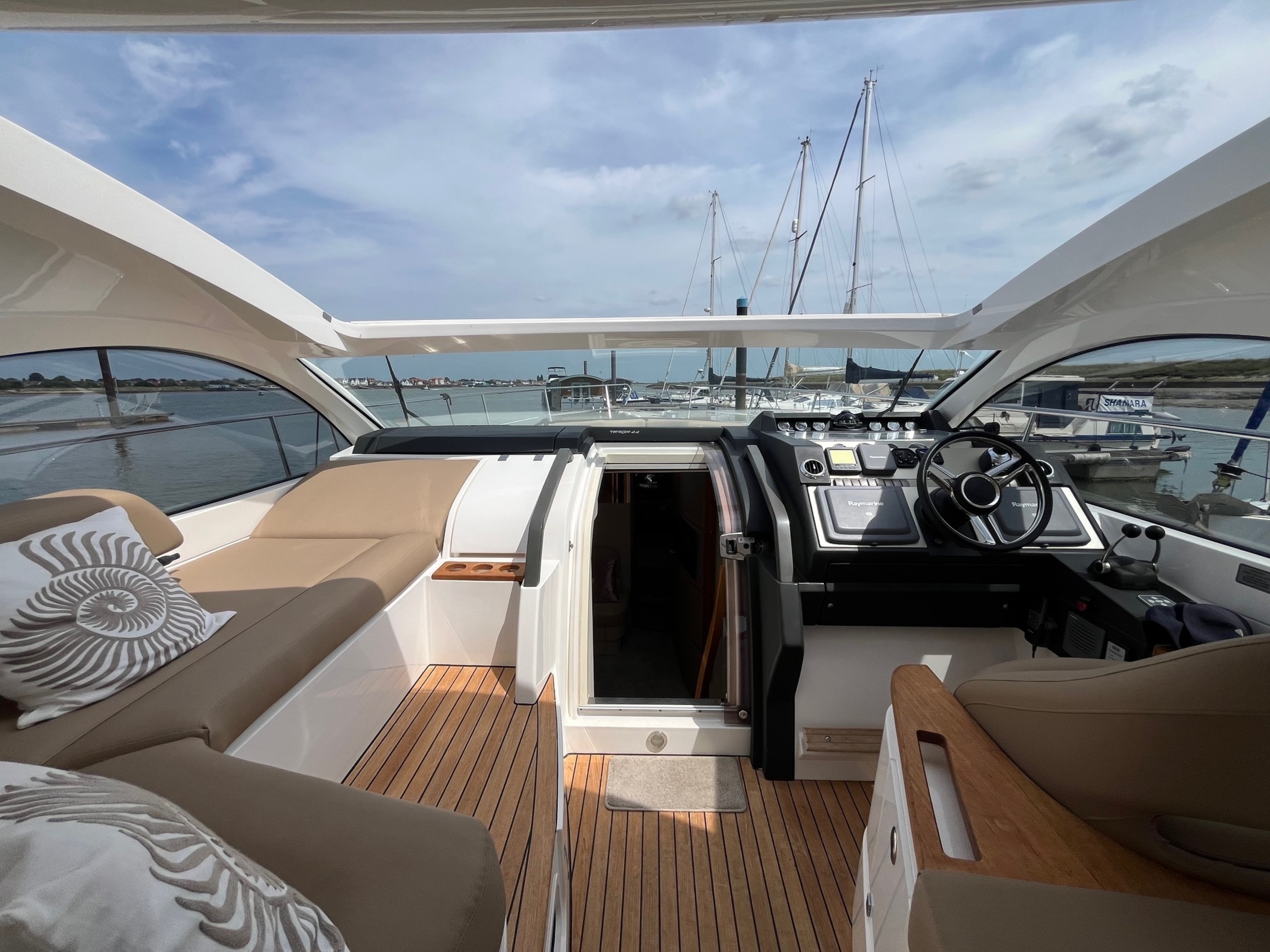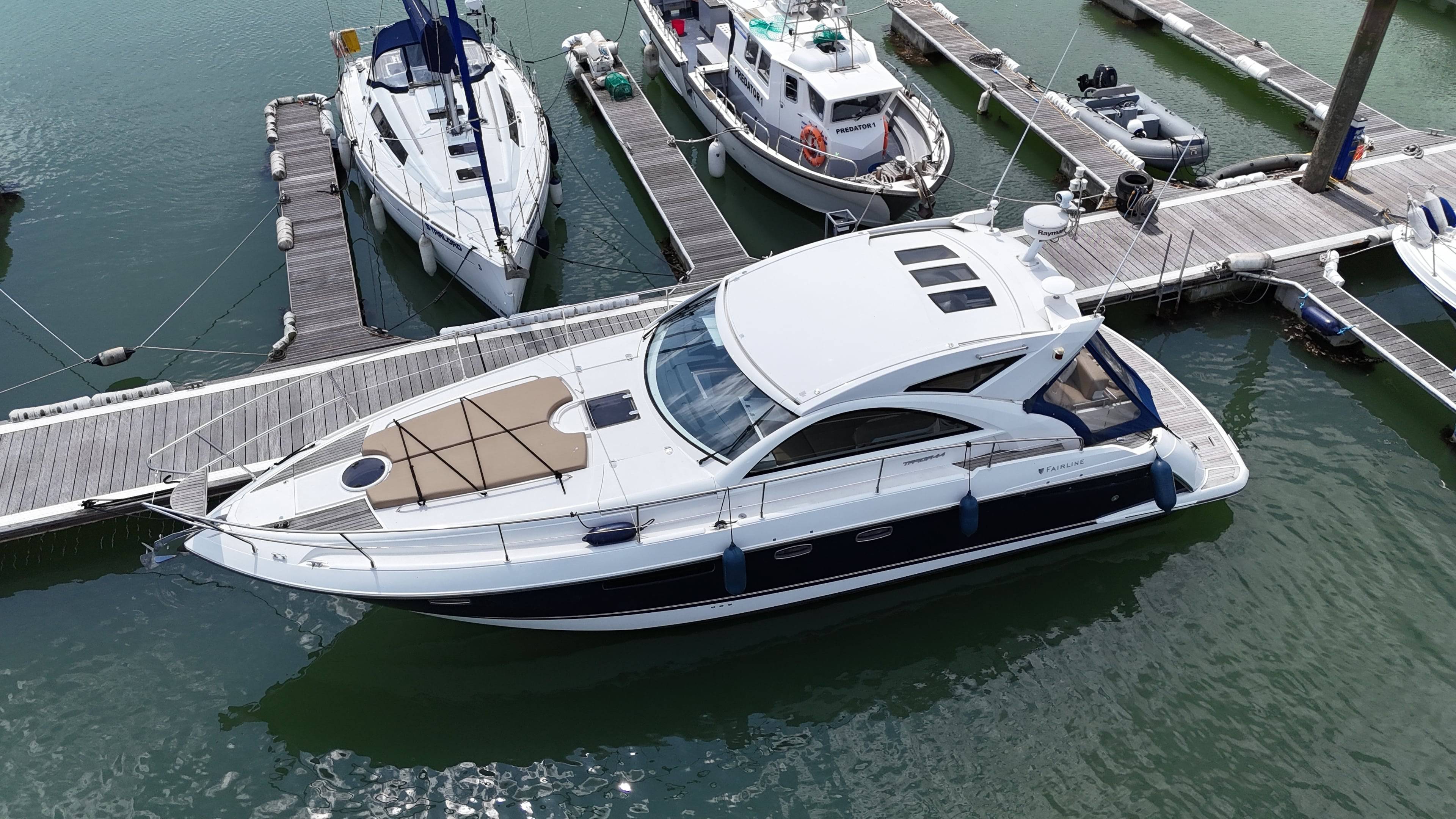 FOR SALE; 2009 Fairline Targa 44GT. Step aboard this 2009 Fairline Targa 44GT, a sleek and stylish sports cruiser that blends sophisticated British craftsmanship with exhilarating performance and easy handling. Designed for those who demand elegance and power on the water, this excellent Fairline is ready to impress. Key Features; Twin Volvo D6 370hp EVC Diesel Engines with IPS Drives. 980 engine hours at time of listing / Retractable Hardtop / Spacious Cockpit & Lounge / Two comfortable cabins / Raymarine Navigation suite / Air conditioning / Generator / Eberspacher heating system / New cockpit upholstery / New fridge / New batteries / Whether you're cruising the coast or anchoring in a secluded bay, the Targa 44GT delivers performance, style, and comfort in perfect harmony. Don't miss this opportunity to own a beautifully maintained yacht that exudes sophistication. For more details and to arrange your appointment please contact Boats.co.uk . Email Sales@boats.co.uk or call 01702258885.