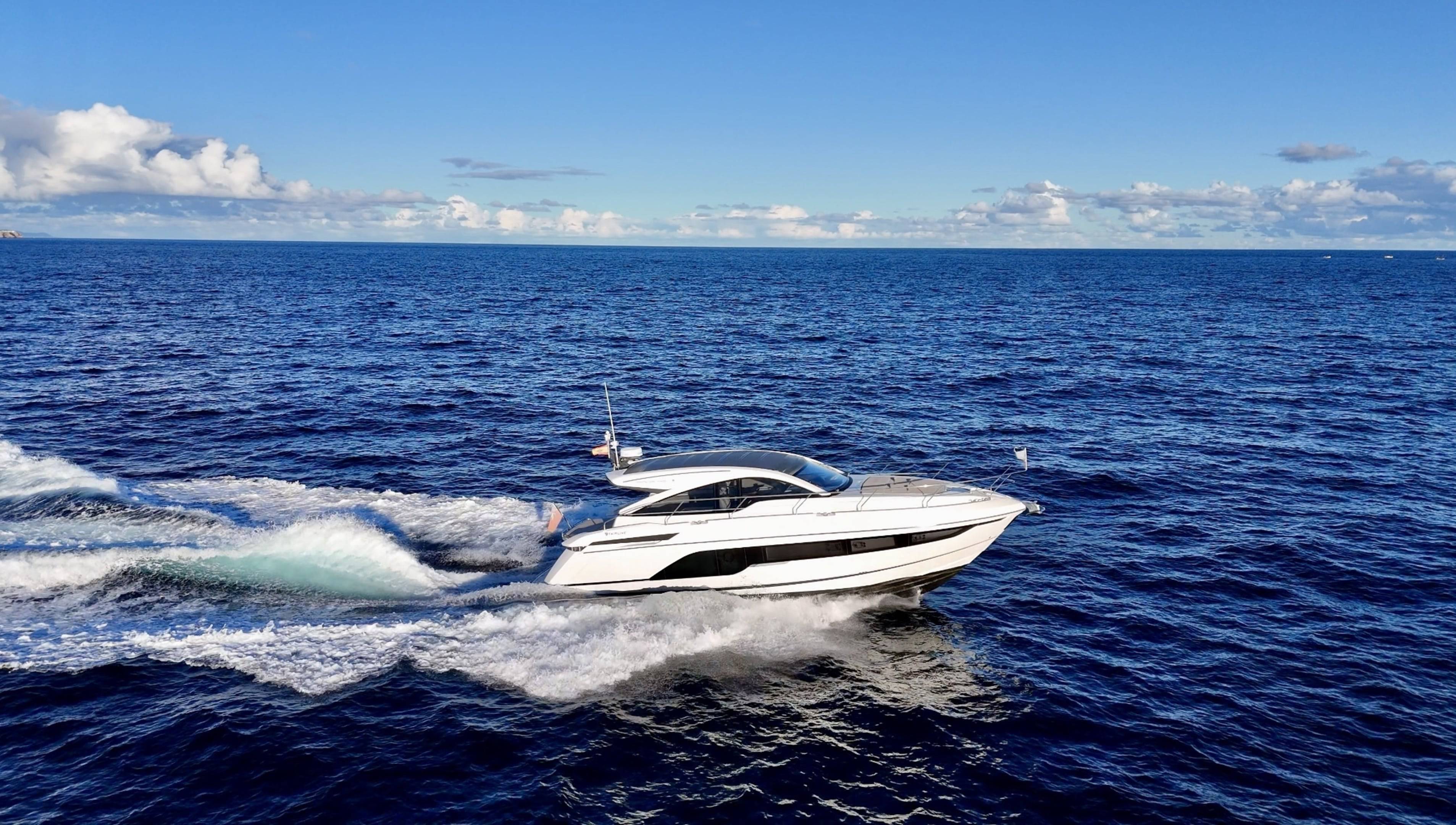 FOR SALE: This like new condition 2022 Fairline Targa 45 is fitted with Volvo Penta IPS650 D6-480hp engines, currently running with 194 hours. This is a very high specification boat with lots of extras including: Sleipner 8.4hp bow thruster // Seakeeper 3 gyroscopic stabiliser // Besenzoni 2.9m hydraulic letterbox passarelle // Garmin GPSmap (12") touchscreen display to helm // Garmin Radome 4kw radar // Inverter // 28" TV with Fusion audio to saloon // Air conditioning; tropical, high capacity specification // Air conditioning to cockpit // Anchoring Upgrade: Lewmar semi-automatic anchor system to helm with chain counter, polished stainless steel 21kg Ultra anchor, 40m of 8mm stainless steel chain // Aft mooring capstans // Teak to cockpit floor // Cantilevered teak cockpit table // Hydraulic hi/lo bathing platform - 400kg lifting capacity // Garage fit out: winch & roller system // Freshwater deck wash outlets // Cockpit wetbar unit with integrated fridge, griddle & icemaker // Fusion amplifier and subwoofer to cockpit // Exterior mood lighting - Blue // Interior mood lighting with dimmer switches throughout // Sliding scissor berth to forward cabin // Feature bulkhead to mid cabin with leather, mirror & timber inlays // Skylight to lower saloon with blind // Lower saloon bed conversion // Mosquito screens to opening portholes // Cockpit canopy - Charcoal // Foredeck sunbed cushions // Walnut Gloss Timber and much more. The offer also stands with a berth available transferable to the new owner. There is a 2022 Williams Turbojet 285 included in the price. For all the details or to arrange a viewing please contact boats.co.uk.