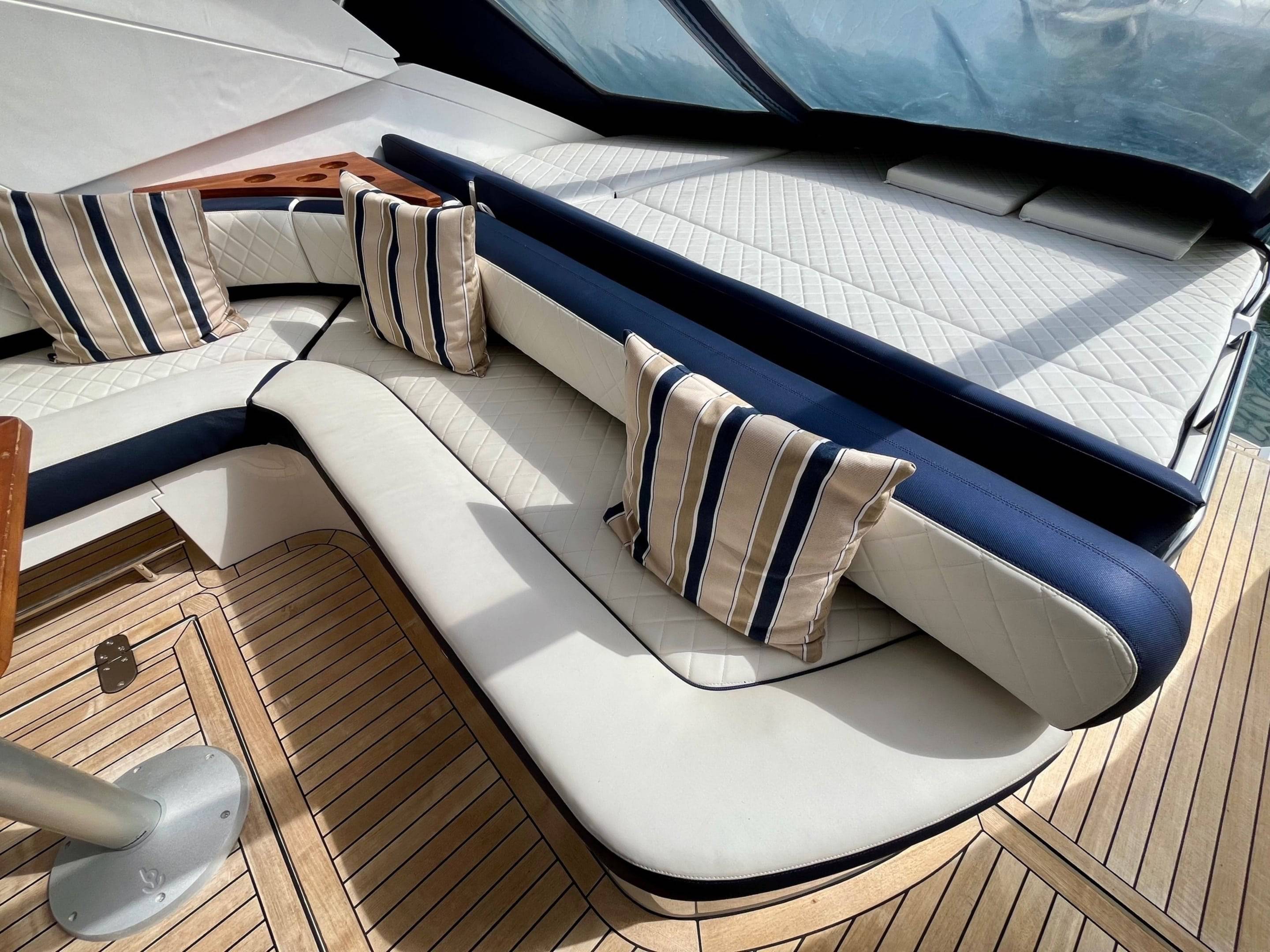 Sunbather - Fore deck sunbathing cushions.