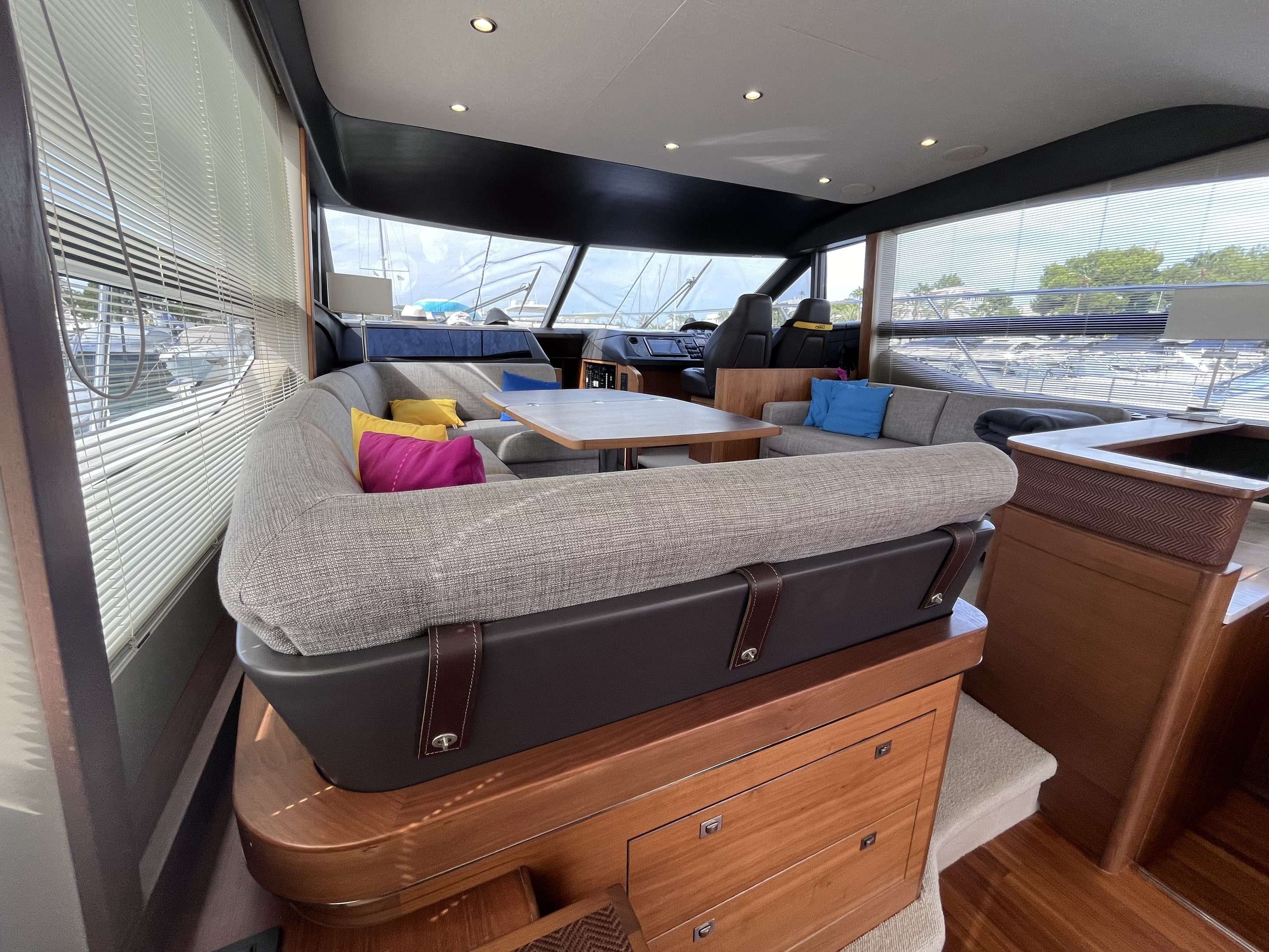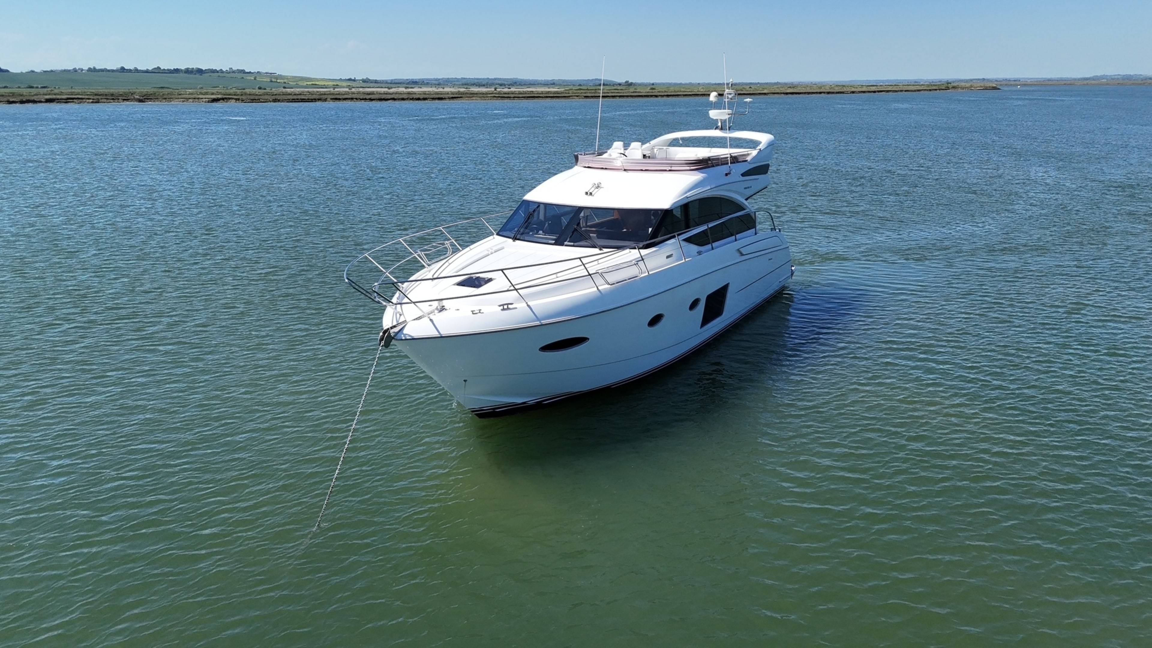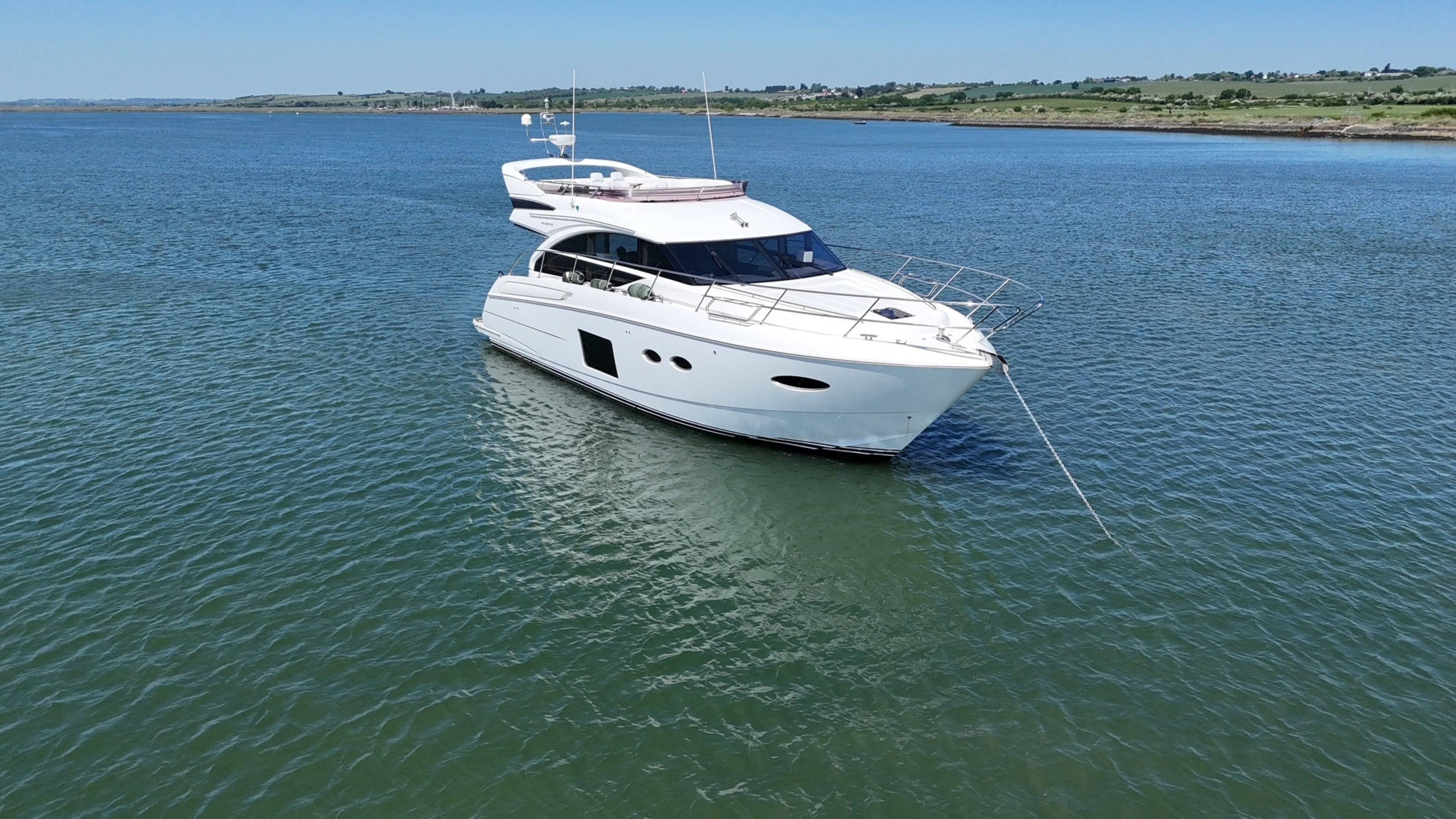 2015 Princess 52! This desirable model comes with a large list of options including: Biggest engine option, twin Caterpillar C-12 715hp // Gyroscopic stabilizer // Reverse cycle air conditioning & heating // Hydraulic letterbox passarelle // Cummins Onan generator // Hydraulic hi-low bathing platform // Fusion speaker system // Security camera system // Sidepower yacht controller // Variable speed bow & stern thrusters // Satin walnut interior // 3 cabin layout // Raymarine radar, plotters and autopilot // Stern docking winches // Washer/dryer // Electric hi-low table to saloon // Electric hi-low TV to saloon // Anchor chain counter // Starboard cabin bed conversion twin/double // 2x fridges to interior // Sink and BBQ wetbar to flybridge // Aft lazarette. For more information please call Boats.co.uk on 01702 258885 or email sales@boats.co.uk