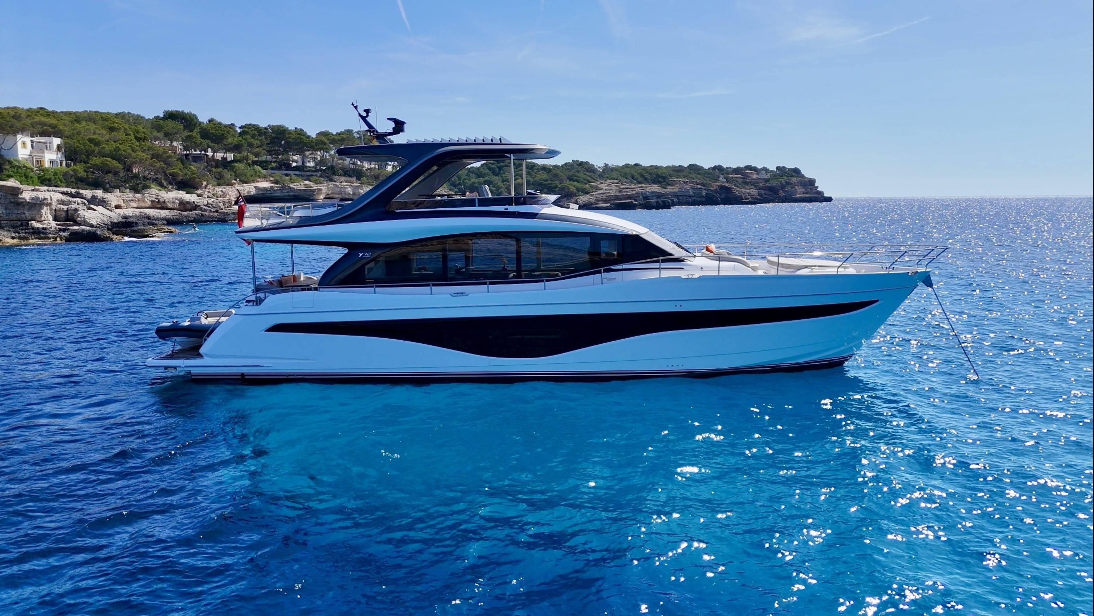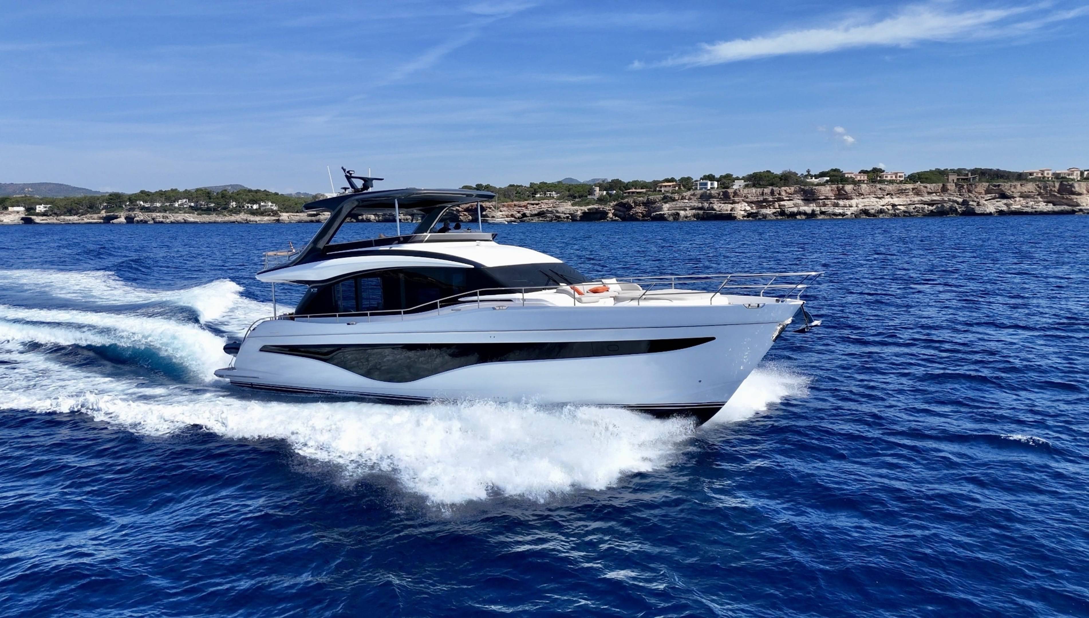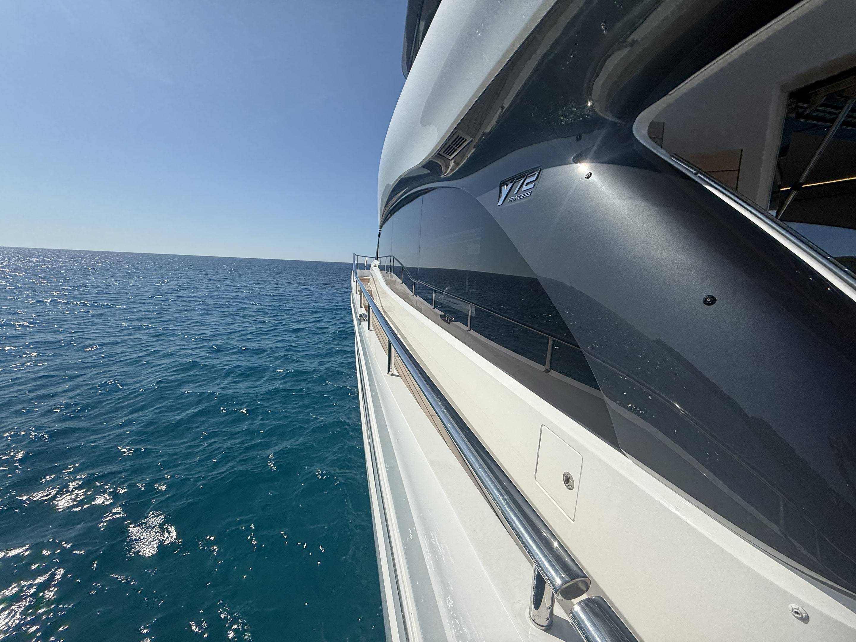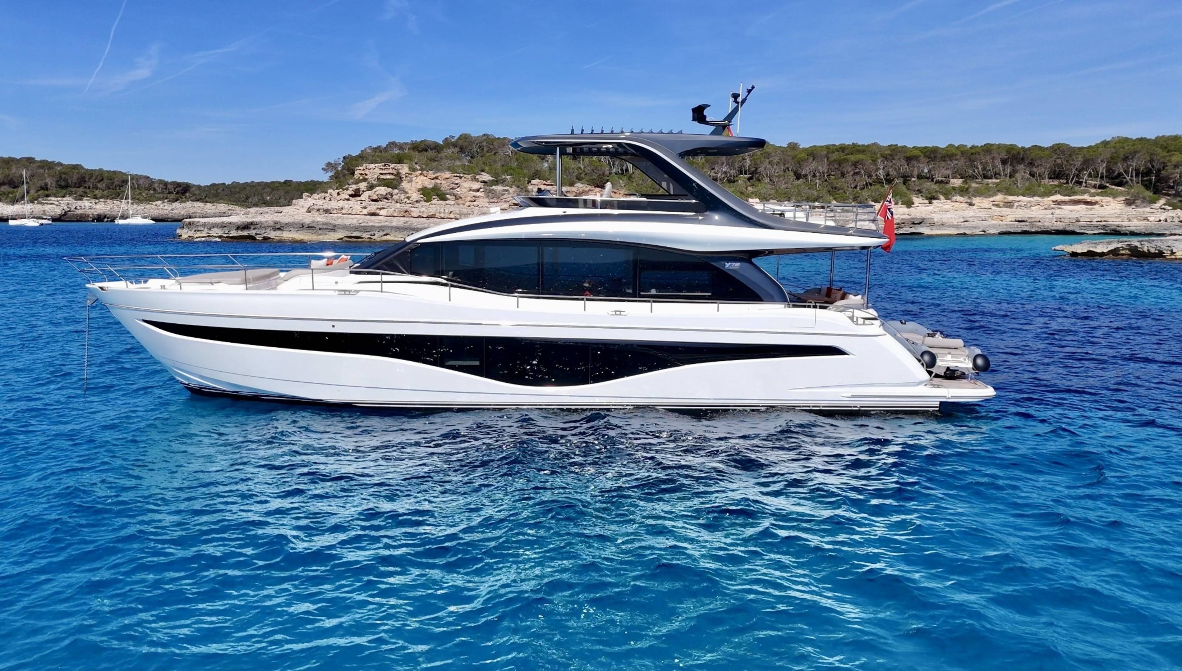 A boat that needs no introduction and praise. We are offering an incredible opportunity to own a 2025 Princess Y72, with a massive specification and as new condition with very low hours. This spacious, modern yacht is superior in its class and a must see vessel. One of Princesses most decorated yachts in terms of awards and compliments through the industry, she really is something special and perfect for a buyer looking to go further afield travelling in the height of a luxury yacht. Don't miss out! She is a white hull with graphite grey exterior accents. Fitted with twin MAN V12 - 1650hp engines taking her to an impressive 35knots top speed and cruising comfortably at 18-24 knots. The extensive specification includes: Third control station // Variable speed Bow & Stern thrusters // Sleipner Vector fin stabilisation systems // Silver Oak interior woods // Port cabin with electrical bed conversion twin- double // Upgraded carpets // Hydraulic HI-Low bathing platform (450kg tender) // Flybridge hardtop featuring electric tilting louvres & dimming LED lights // Electric sun awning to flybridge aft // Stainless steal anchor upgrade // Deck wash system // Generator upgraded to ONAN 27KW // Underwater lights // Exterior lighting upgrade package // Interior lighting upgrade package // Electric Venetian blinds // electric Hi-Low TV to saloon // Naim audio system upgrade // Onboard wifi throughout // Raymarine navigational equipment: Plotters, Radar, GPS, Multi-functional instruments and autopilot // CCTV // AIS // Twin ray marine screens to both helms // Reverse cycle air conditioning/heating // Exterior Upholstery in Met Macadamia and so much more to see. Contact Boats.co.uk to arrange a viewing on +44(0)1702 258885 or email: sales@boats.co.uk