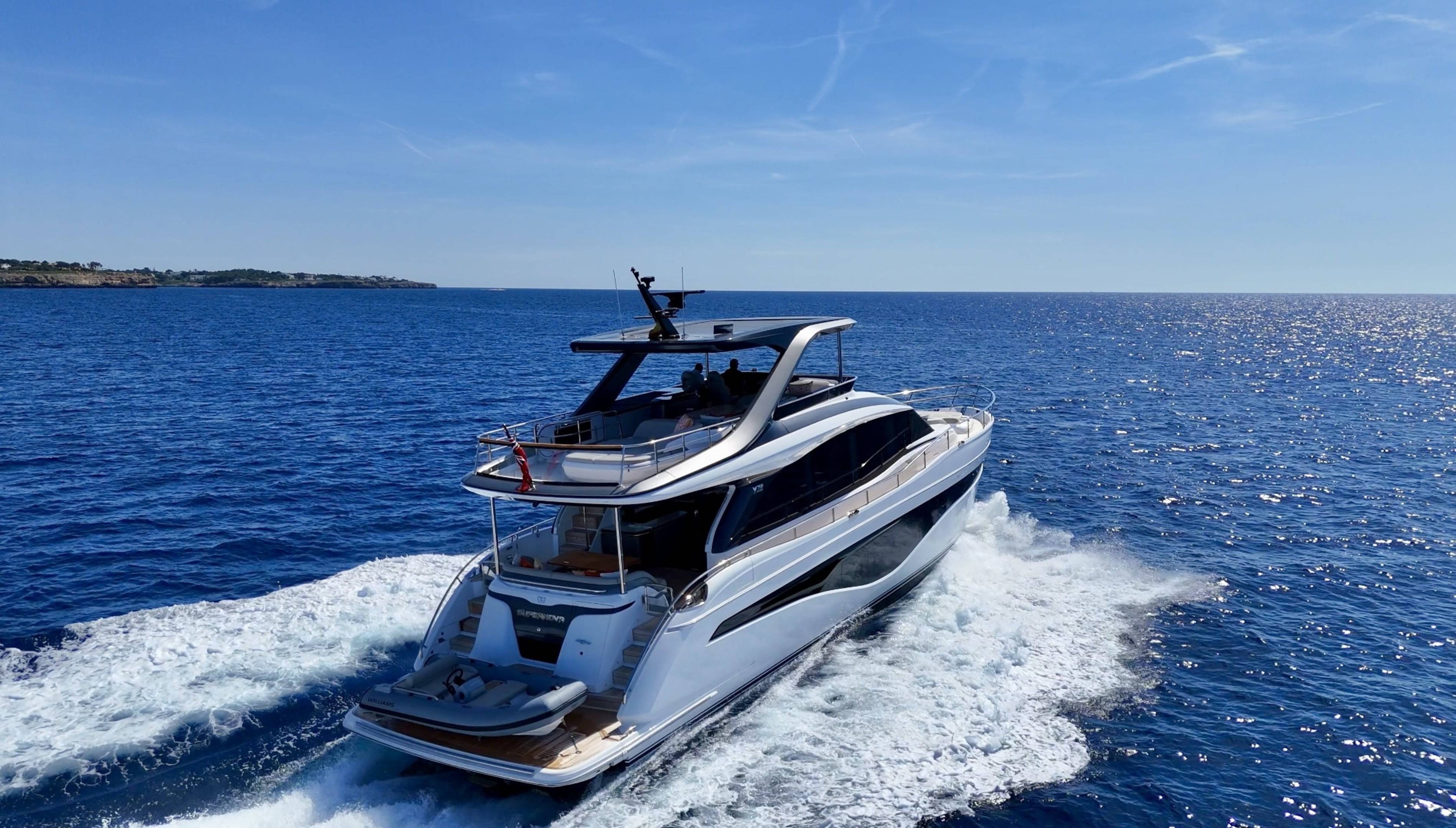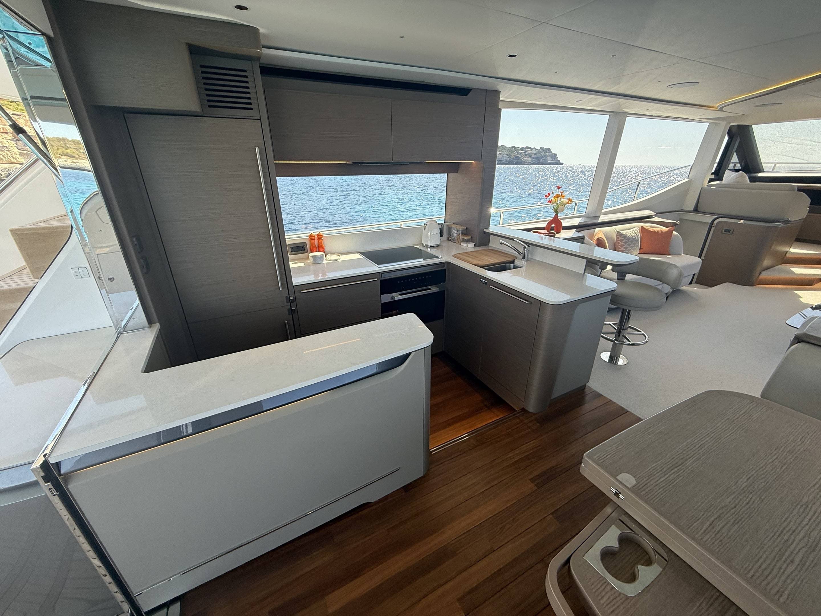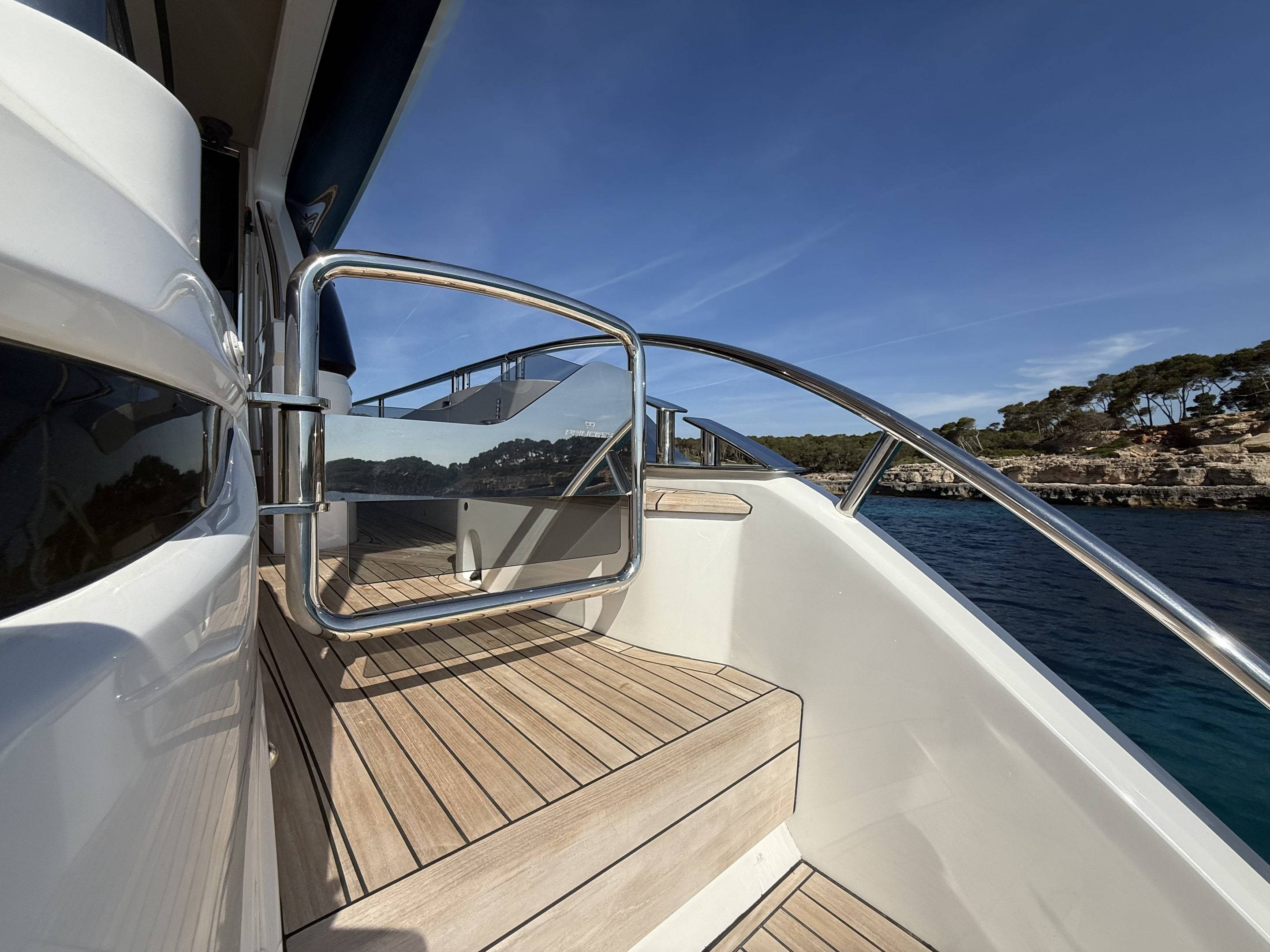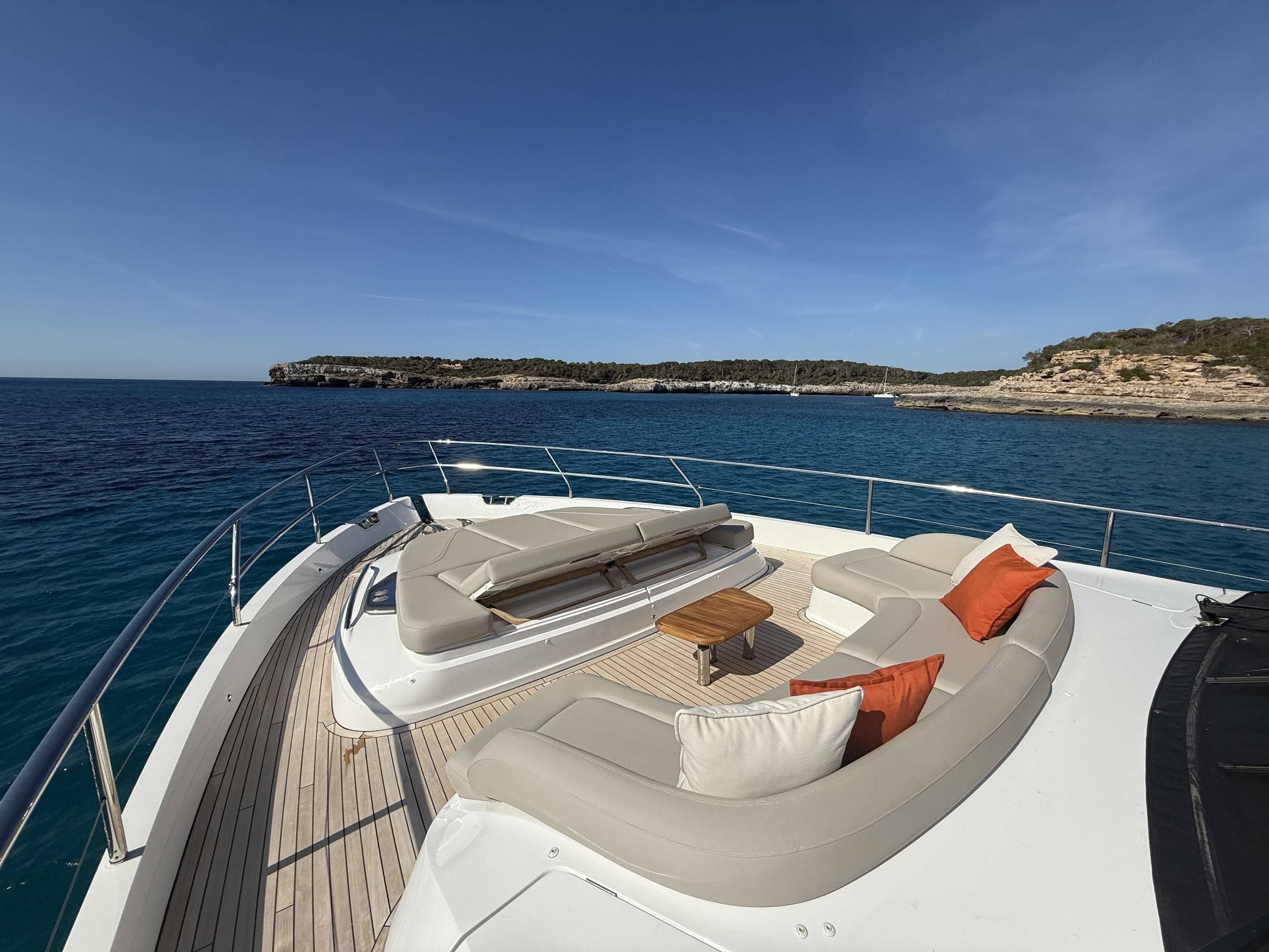 A boat that needs no introduction and praise. We are offering an incredible opportunity to own a 2025 Princess Y72, with a massive specification and as new condition with very low hours. This spacious, modern yacht is superior in its class and a must see vessel. One of Princesses most decorated yachts in terms of awards and compliments through the industry, she really is something special and perfect for a buyer looking to go further afield travelling in the height of a luxury yacht. Don't miss out! She is a white hull with graphite grey exterior accents. Fitted with twin MAN V12 - 1650hp engines taking her to an impressive 35knots top speed and cruising comfortably at 18-24 knots. The extensive specification includes: Third control station // Variable speed Bow & Stern thrusters // Sleipner Vector fin stabilisation systems // Silver Oak interior woods // Port cabin with electrical bed conversion twin- double // Upgraded carpets // Hydraulic HI-Low bathing platform (450kg tender) // Flybridge hardtop featuring electric tilting louvres & dimming LED lights // Electric sun awning to flybridge aft // Stainless steal anchor upgrade // Deck wash system // Generator upgraded to ONAN 27KW // Underwater lights // Exterior lighting upgrade package // Interior lighting upgrade package // Electric Venetian blinds // electric Hi-Low TV to saloon // Naim audio system upgrade // Onboard wifi throughout // Raymarine navigational equipment: Plotters, Radar, GPS, Multi-functional instruments and autopilot // CCTV // AIS // Twin ray marine screens to both helms // Reverse cycle air conditioning/heating // Exterior Upholstery in Met Macadamia and so much more to see. Contact Boats.co.uk to arrange a viewing on +44(0)1702 258885 or email: sales@boats.co.uk