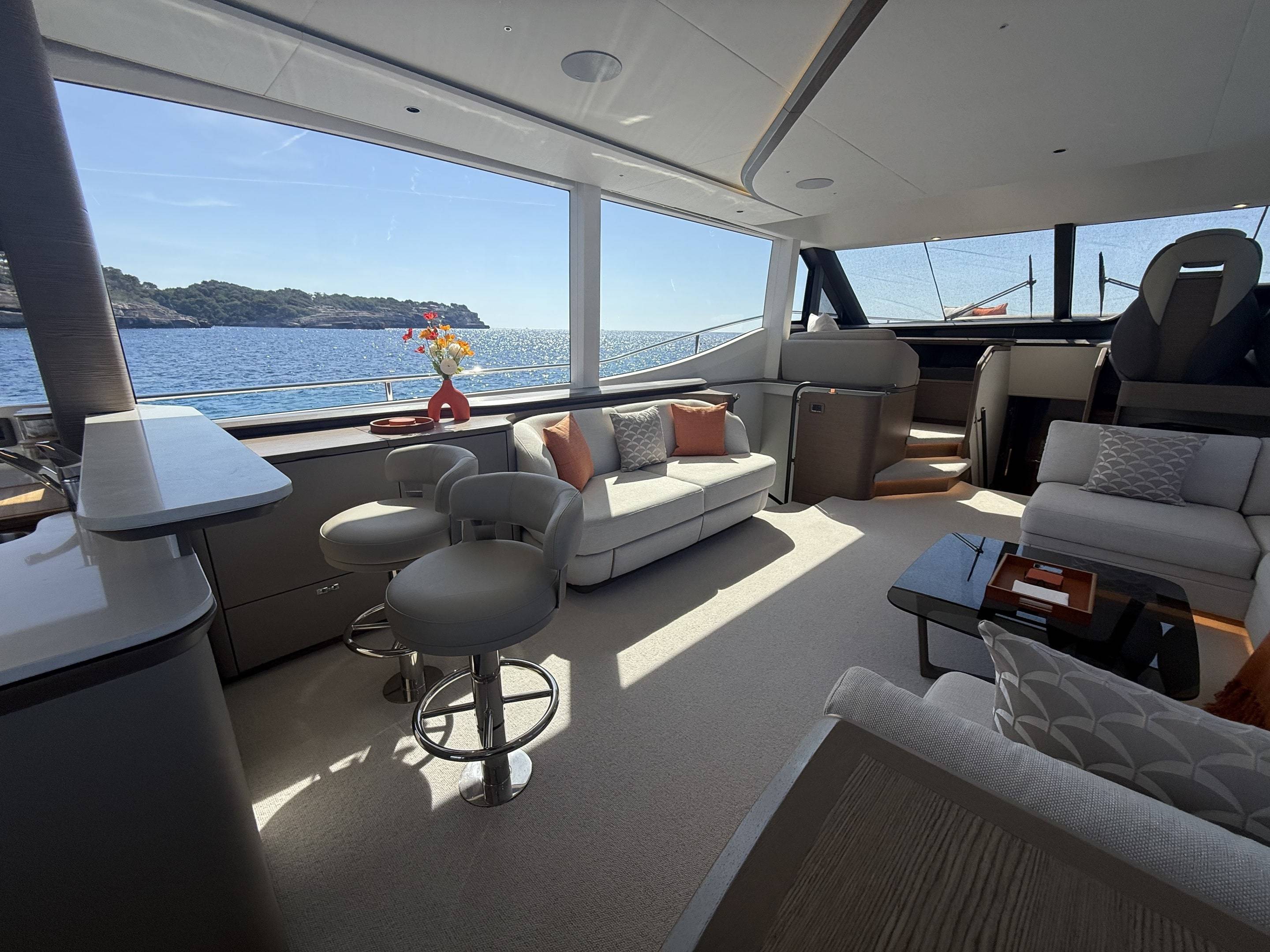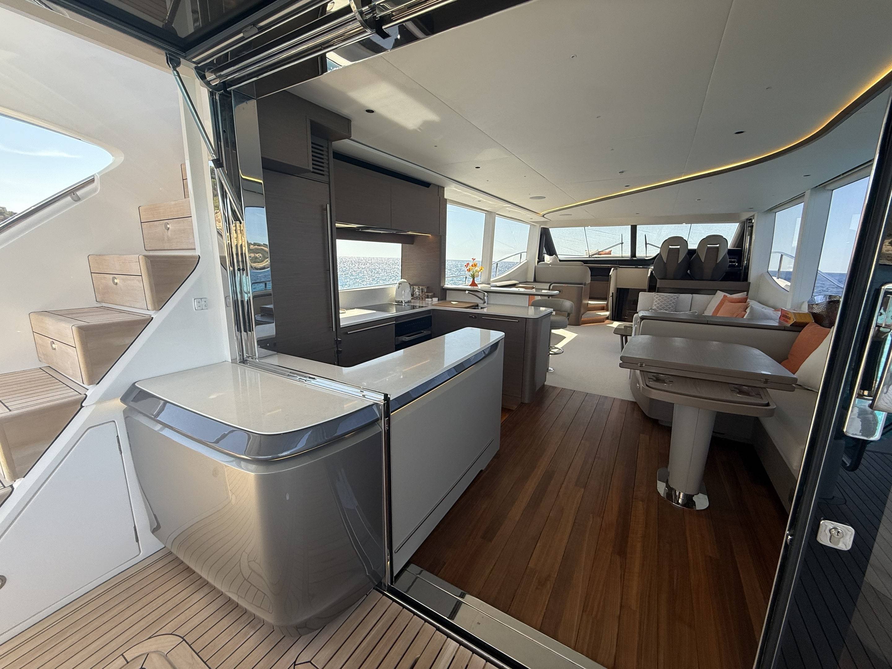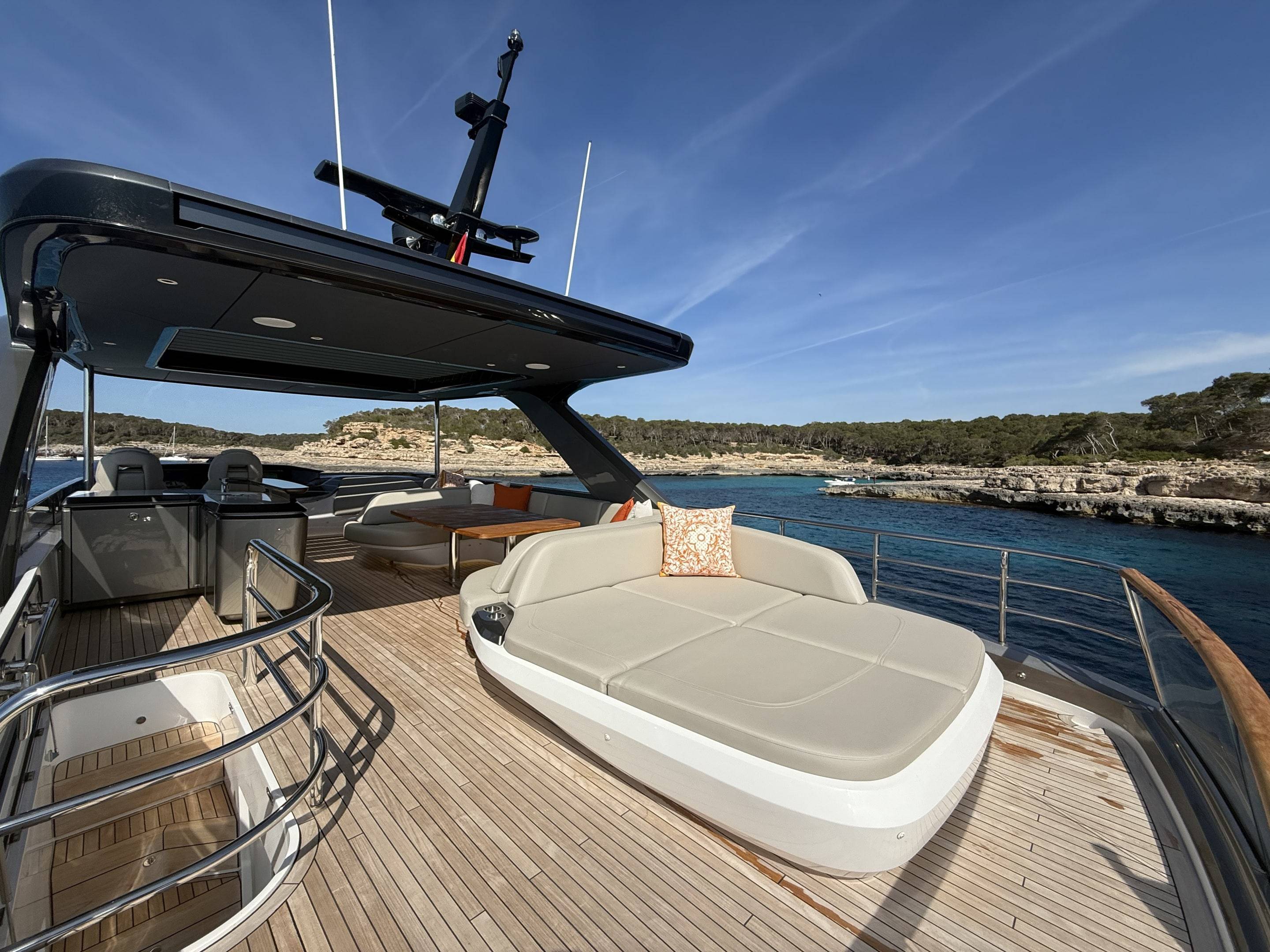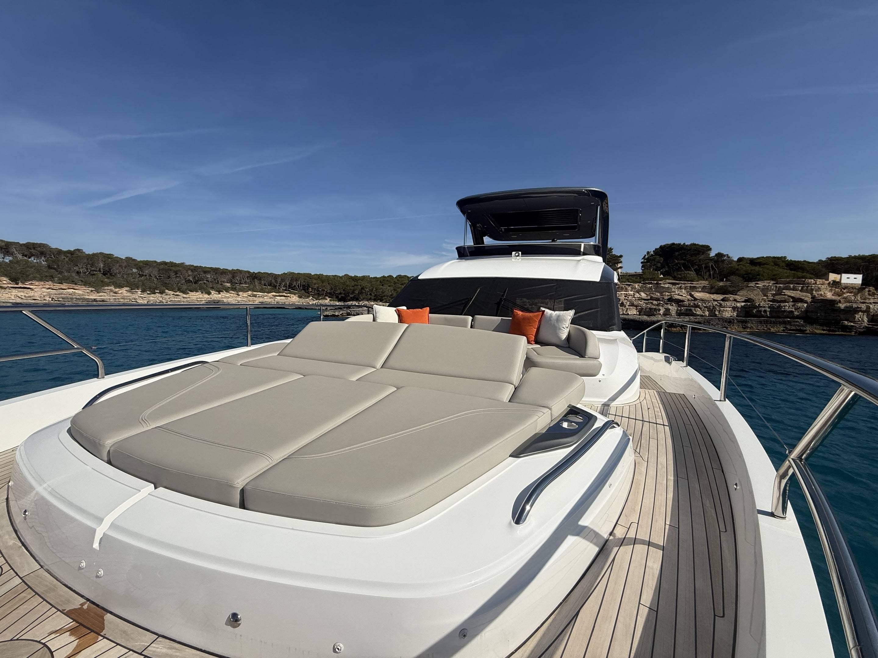 A boat that needs no introduction and praise. We are offering an incredible opportunity to own a 2025 Princess Y72, with a massive specification and as new condition with very low hours. This spacious, modern yacht is superior in its class and a must see vessel. One of Princesses most decorated yachts in terms of awards and compliments through the industry, she really is something special and perfect for a buyer looking to go further afield travelling in the height of a luxury yacht. Don't miss out! She is a white hull with graphite grey exterior accents. Fitted with twin MAN V12 - 1650hp engines taking her to an impressive 35knots top speed and cruising comfortably at 18-24 knots. The extensive specification includes: Third control station // Variable speed Bow & Stern thrusters // Sleipner Vector fin stabilisation systems // Silver Oak interior woods // Port cabin with electrical bed conversion twin- double // Upgraded carpets // Hydraulic HI-Low bathing platform (450kg tender) // Flybridge hardtop featuring electric tilting louvres & dimming LED lights // Electric sun awning to flybridge aft // Stainless steal anchor upgrade // Deck wash system // Generator upgraded to ONAN 27KW // Underwater lights // Exterior lighting upgrade package // Interior lighting upgrade package // Electric Venetian blinds // electric Hi-Low TV to saloon // Naim audio system upgrade // Onboard wifi throughout // Raymarine navigational equipment: Plotters, Radar, GPS, Multi-functional instruments and autopilot // CCTV // AIS // Twin ray marine screens to both helms // Reverse cycle air conditioning/heating // Exterior Upholstery in Met Macadamia and so much more to see. Contact Boats.co.uk to arrange a viewing on +44(0)1702 258885 or email: sales@boats.co.uk