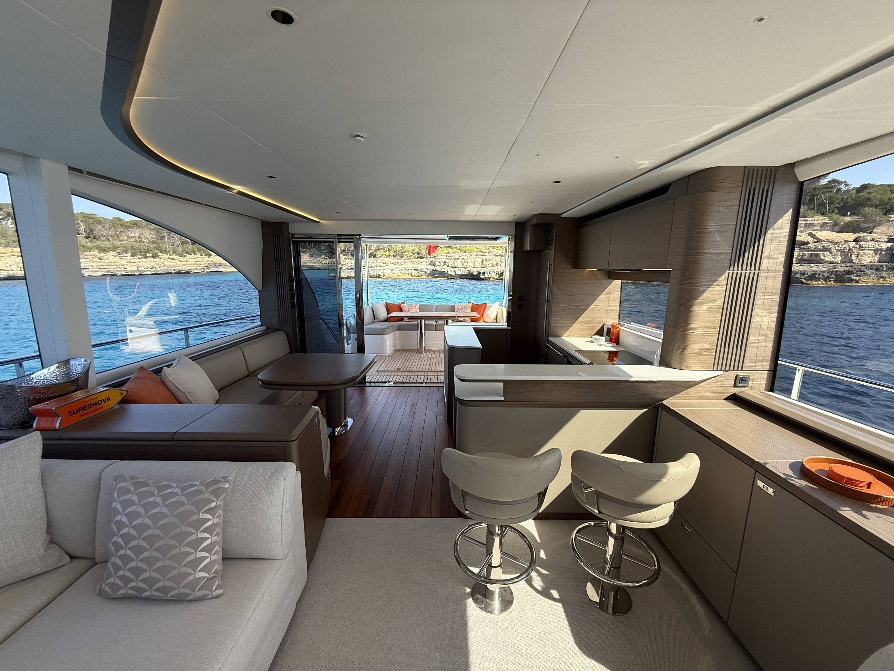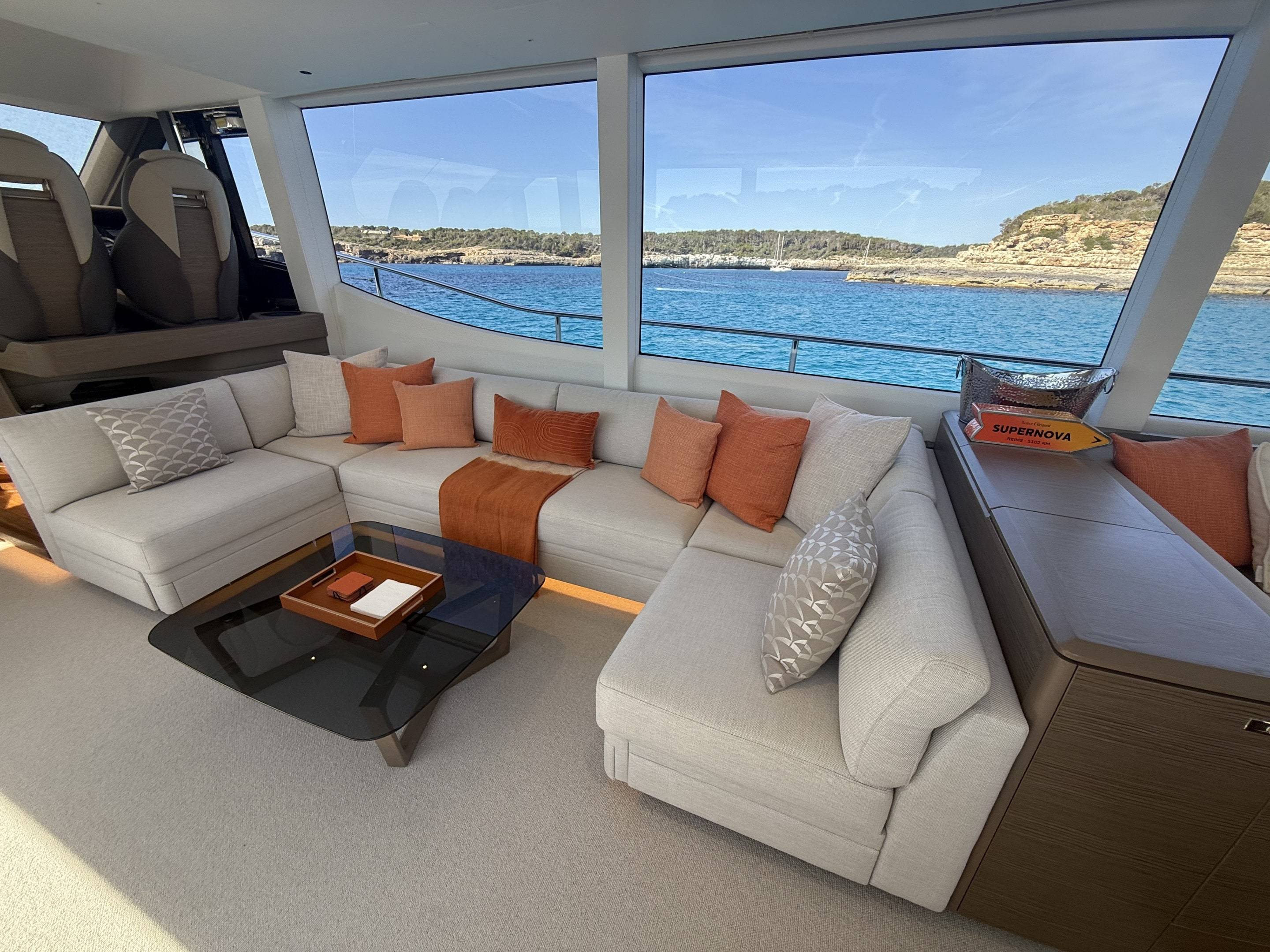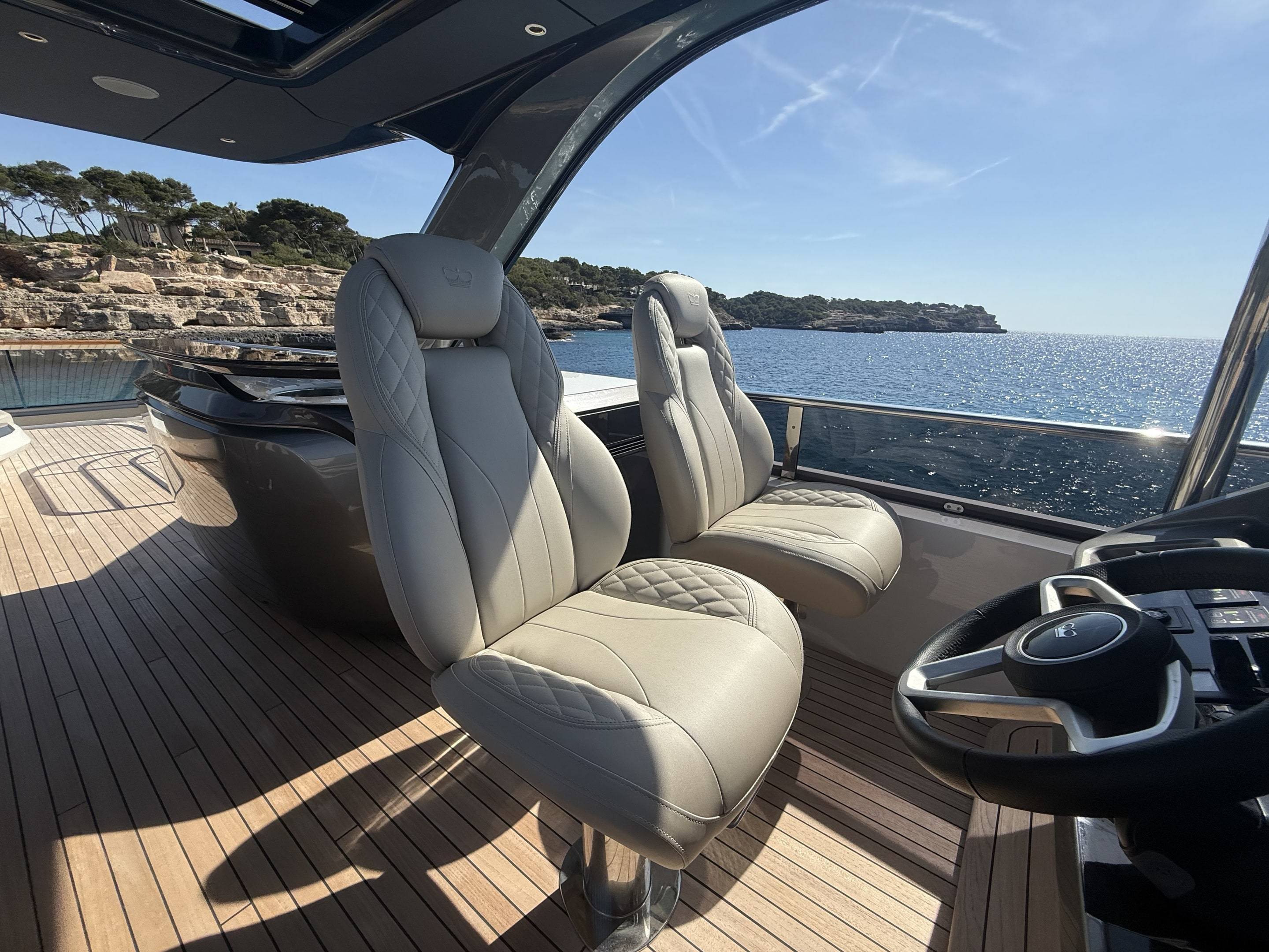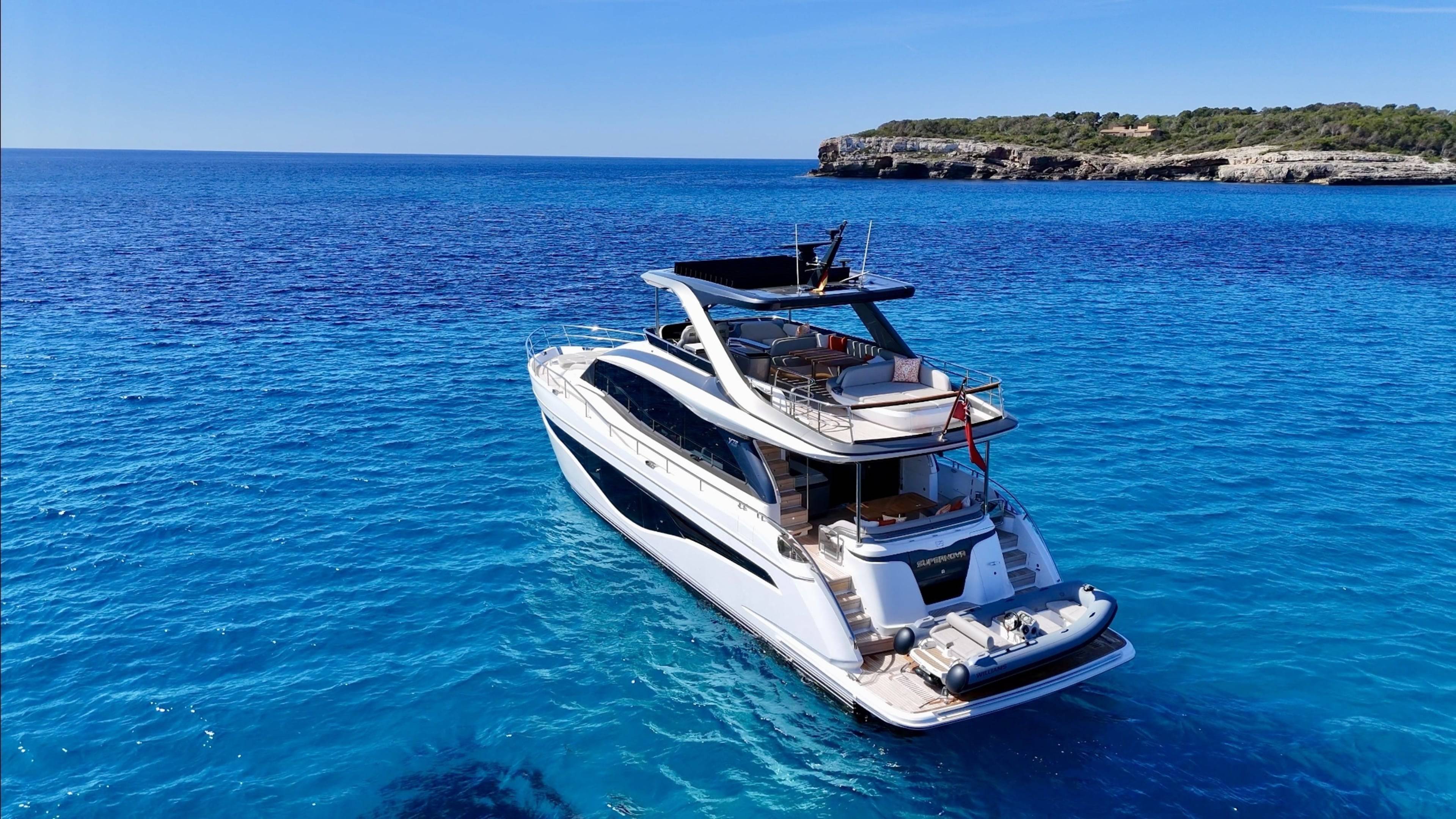 A boat that needs no introduction and praise. We are offering an incredible opportunity to own a 2025 Princess Y72, with a massive specification and as new condition with very low hours. This spacious, modern yacht is superior in its class and a must see vessel. One of Princesses most decorated yachts in terms of awards and compliments through the industry, she really is something special and perfect for a buyer looking to go further afield travelling in the height of a luxury yacht. Don't miss out! She is a white hull with graphite grey exterior accents. Fitted with twin MAN V12 - 1650hp engines taking her to an impressive 35knots top speed and cruising comfortably at 18-24 knots. The extensive specification includes: Third control station // Variable speed Bow & Stern thrusters // Sleipner Vector fin stabilisation systems // Silver Oak interior woods // Port cabin with electrical bed conversion twin- double // Upgraded carpets // Hydraulic HI-Low bathing platform (450kg tender) // Flybridge hardtop featuring electric tilting louvres & dimming LED lights // Electric sun awning to flybridge aft // Stainless steal anchor upgrade // Deck wash system // Generator upgraded to ONAN 27KW // Underwater lights // Exterior lighting upgrade package // Interior lighting upgrade package // Electric Venetian blinds // electric Hi-Low TV to saloon // Naim audio system upgrade // Onboard wifi throughout // Raymarine navigational equipment: Plotters, Radar, GPS, Multi-functional instruments and autopilot // CCTV // AIS // Twin ray marine screens to both helms // Reverse cycle air conditioning/heating // Exterior Upholstery in Met Macadamia and so much more to see. Contact Boats.co.uk to arrange a viewing on +44(0)1702 258885 or email: sales@boats.co.uk