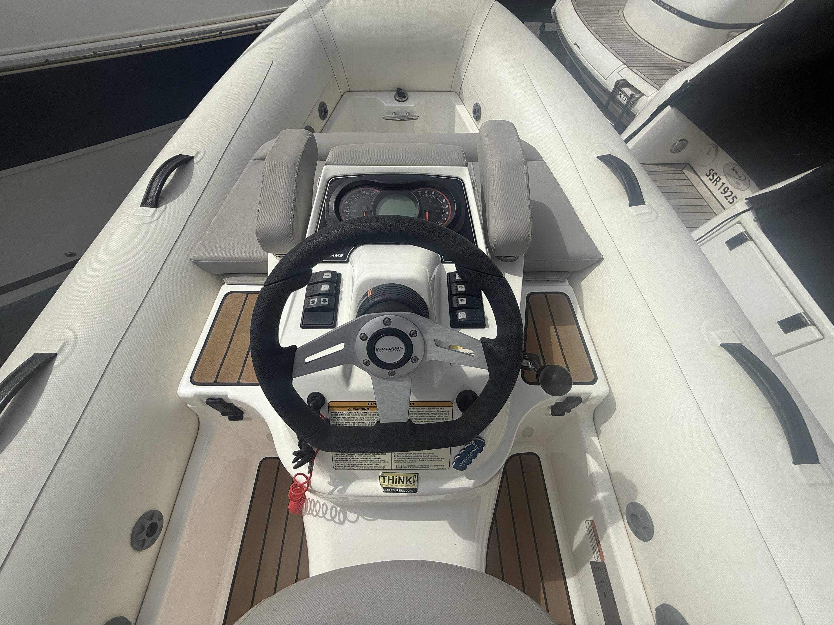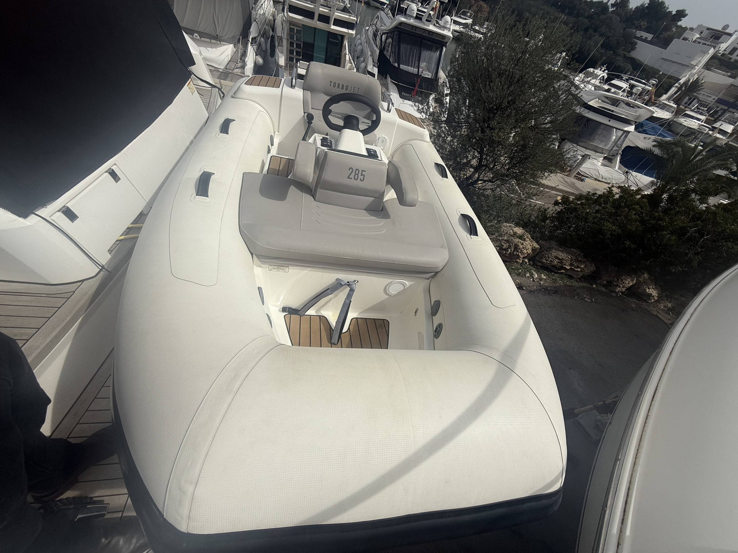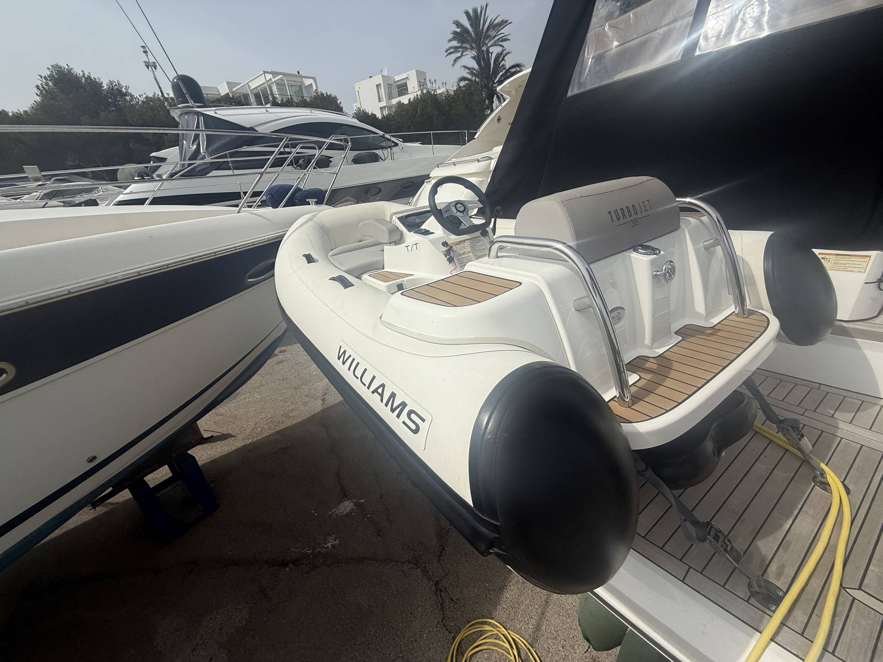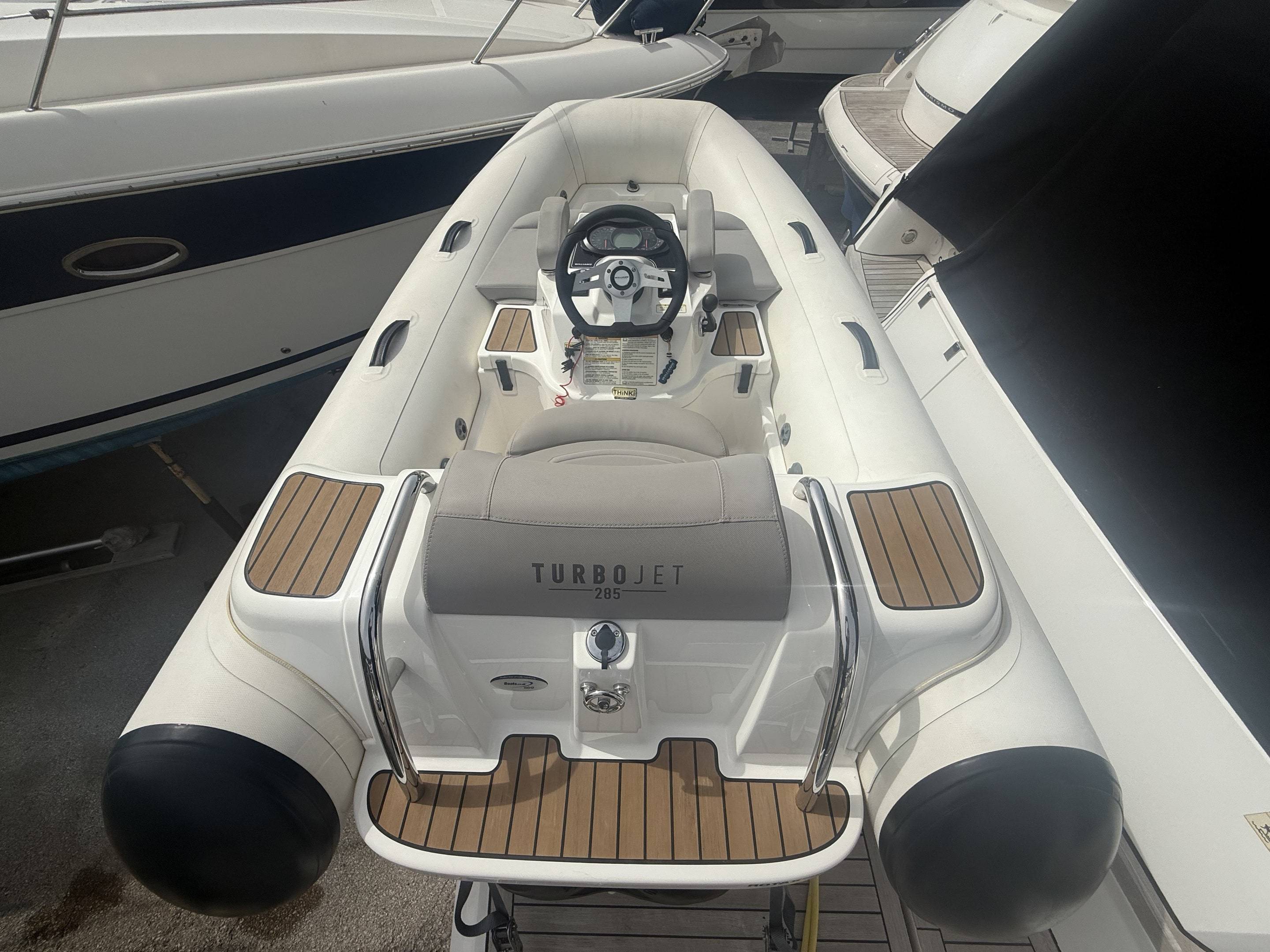 2021 Williams Turbojet 285 90HP Rotax 900 BRP 3 Cylinder engine with approx 17 hours. Available now, This is a preowned 2021 Turbojet 285 with the Rotax engine. Specification includes: White & Black Tubes, Grey Upholstery, Teak pods and footwells, Overall cover, Under-seat storage, 12v DC socket, Sealed upholstered seating (removable). Sports boat hull shape, Piped deck drains, Automatic fire extinguisher, Speedometer (GPS), RPM gauge with digital hour metre, flushing point, Towing eye and navigation light. Its in like new condition and ready to go laying in Cala d'or Mallorca! Call BoatsCo today for more details.
