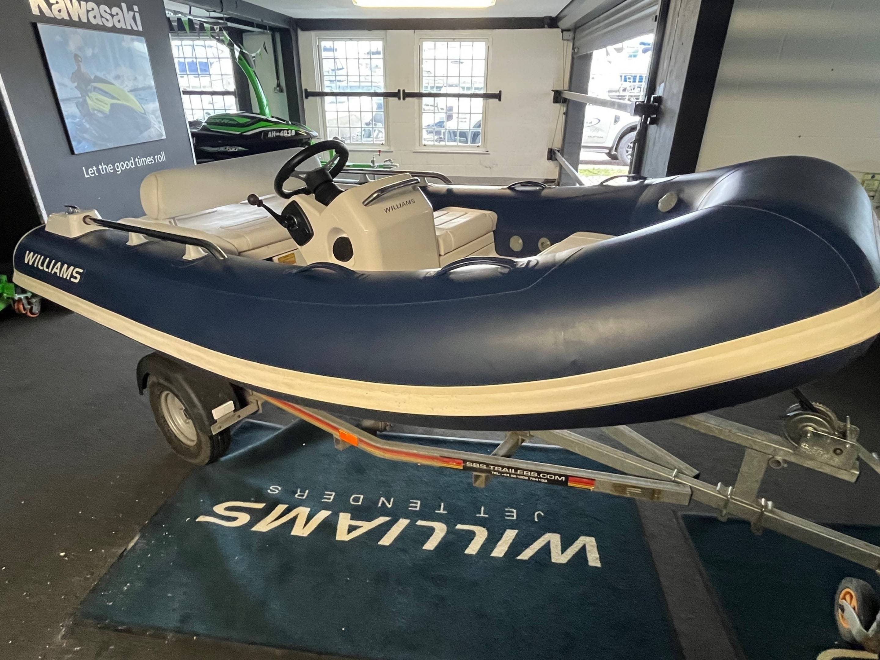 2018 Williams 345 Sport Jet. Powered by a Rotax Ace 903 3 cylinder 90HP Engine with 20 hours. This specification includes; Ocean Blue Tubes, White upholstery, Overall cover, LED lights, Teak pods and footwells, The latest edition to this thrilling range gives those with smaller yachts the opportunity to truly experience these high-performance, super-fun tenders. Designed to fit on the back of 16m+/52ft+ motor yachts, it might have a smaller LOA, but that doesn’t stop it seating five adults. The BRP Rotax engine also packs a punch, while the sports hull gives impressive stability to create an exceptional craft. Whether you’re pulling a skier or going in search of unspoilt turquoise coves and deserted golden beaches – it’s always a pleasure. BOATS.CO.UK ARE THE UK'S DEALERSHIP FOR WILLIAMS PERFORMANCE JET TENDERS. WE SPECIALIZE IN NEW AND PRE-OWNED WILLIAMS. WE CAN PART EXCHANGE AND BUY OUTRIGHT. Contact or email Darren@Boats.co.uk on 01702258885 for more information. Additional Details