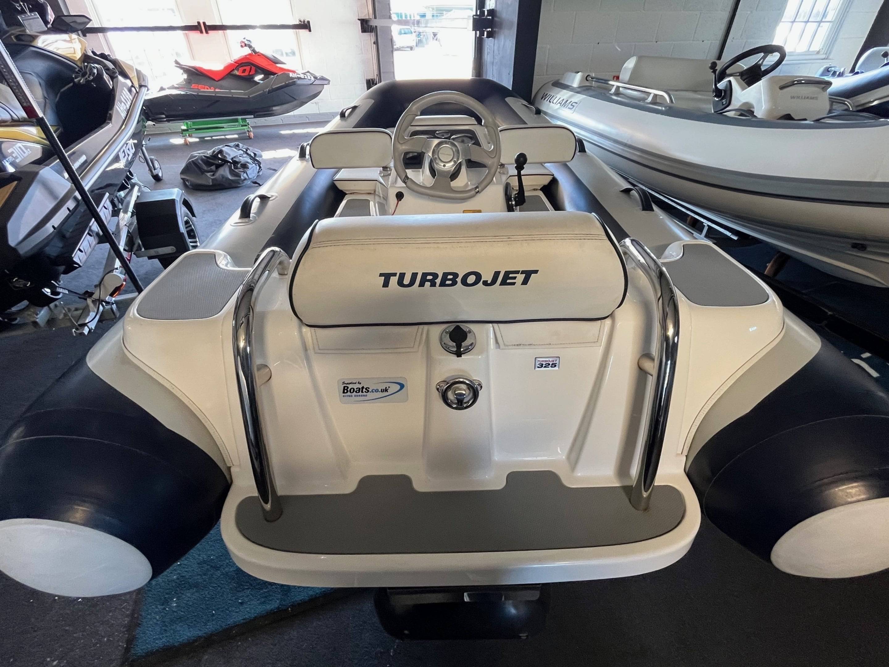 2015 Williams 325. The Turbojet 325's spacious layout can accommodate four adults and one child in comfort, with stowage in the forward locker and under the central seat. Her hull length promotes a supremely stable platform for safe embarking/disembarking. As with all Turbojets the fuel economy is impressive, giving extended use between refueling for true coastal cruising capability. Features include; Under seat storage // 12v DC Socket // Sealed upholstered seating // Sports boat hull shape // Piped deck drains // Speedometer // RPM Gauge with digital Hour meter // Fuel Gauge // Single Lever Throttle/Shift Control // Stainless Steel Rear Handles // Forward Seat Neoprene/Fabric Grab Handles // Bow U Bolt // Four Lifting Pad-Eyes // Ski Eye // Two Rear Tie Down Points // Automatic Bilge Pump // Bilge Blower // Battery Isolator // Fitted Fuel Tank (42 litres). For more information on this 2015 Williams Turbojet 325 please contact Boats.co.uk 01702258885 or Email Sales@boats.co.uk