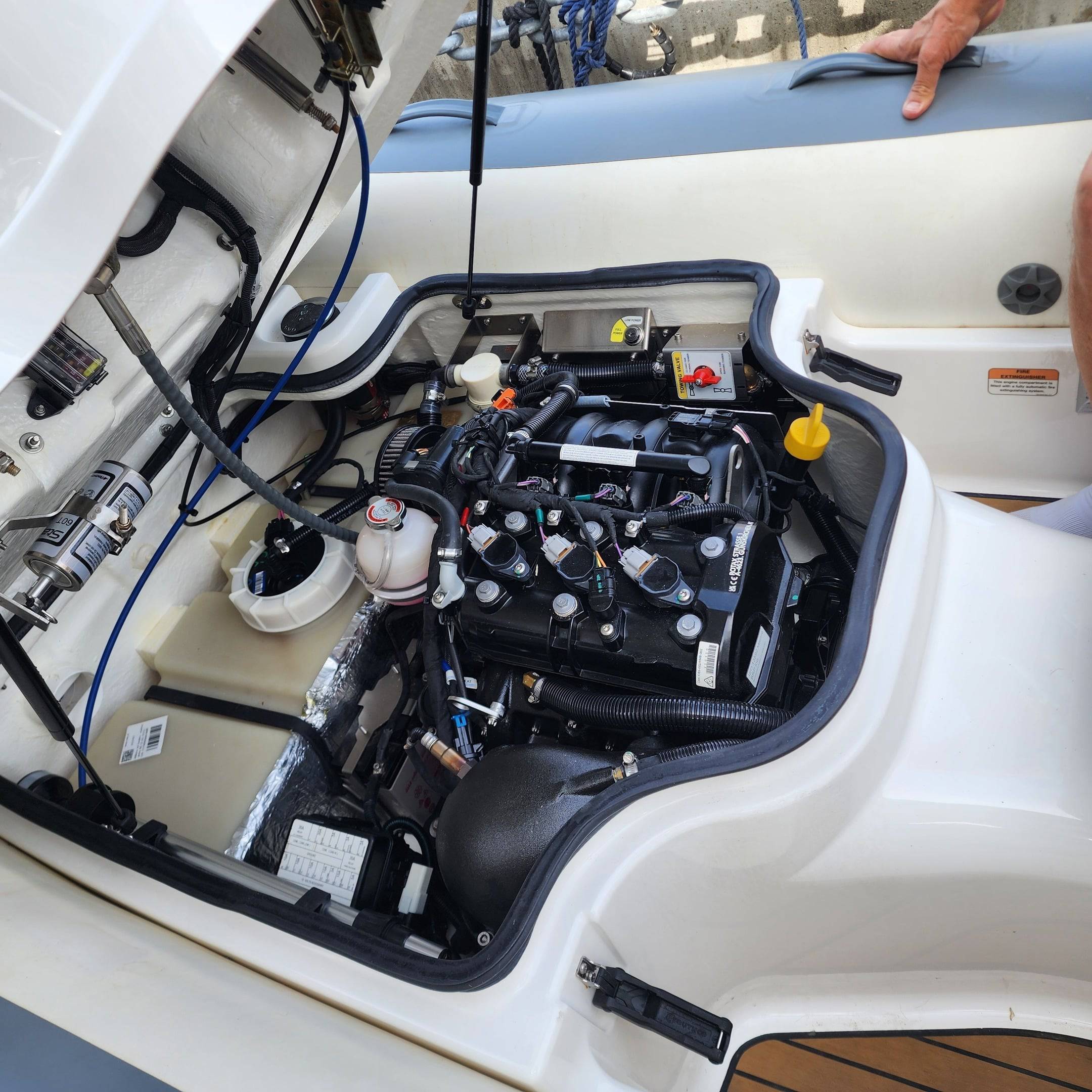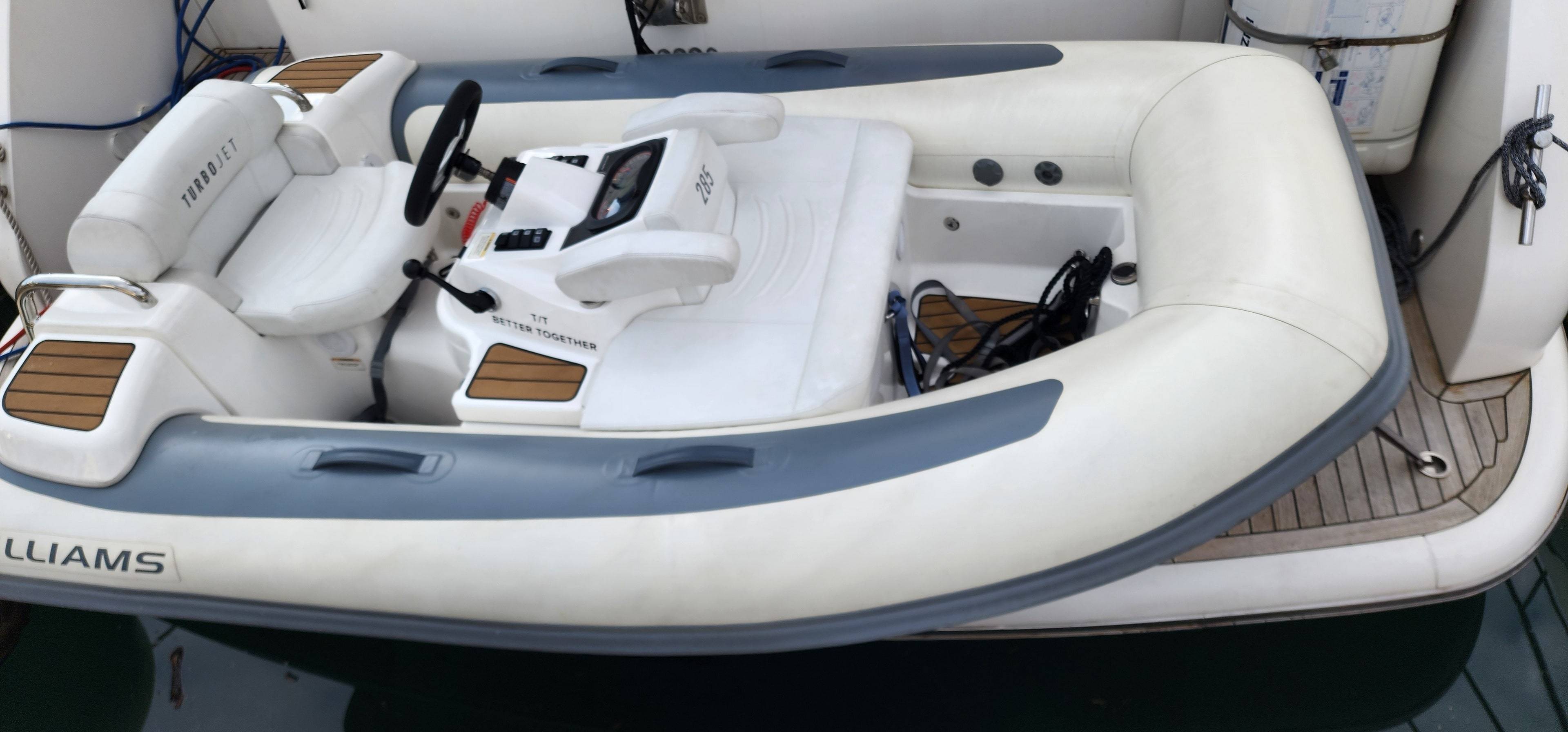 FOR SALE; Pre - owned 2023 Williams Turbojet 285 90HP Rotax 900 BRP 3 Cylinder engine with only 2 hours use. New updated version of the Turbojet 285 with a sleeker style and lighter overall weight. Specification includes: LED Lighting , Teak footwells, Under-seat storage, 12v DC socket, Sealed upholstered seating (removable). Sports boat hull shape, Piped deck drains, Automatic fire extinguisher, Speedometer (GPS), RPM gauge with digital hour metre. Fuel gauge, Single lever throttle/Shift control. Plug in navigation lights, (Port/Starboard/Running), Stainless steel rear handles, Forward seat neoprene/Fabric grab handles, Engine flushing attachment, Bow U Bolt, Four lifting pad-eyes, Ski eye, Two rear tie down points, Automatic bilge pump, Bilge blower, Battery isolator, Tube repair kit, Footpump (2 Stage), Owner's manual, Fitted fuel tank, Hand-made inflatable tube with rubstrake and grab handles, Folding backrests. A nimble tender that defies its size, the Turbojet 285 is designed to easily fit into the tender garage or bathing platform of most 12m to 16m (39ft to 52ft) yachts. It will take you smoothly to the quayside for supplies or a leisurely bite to eat. But open up the throttle and she'll show you a different side. The sports hull and Rotax engine come into their own, carving tight circles or going flat out in secure straight lines for waterskiing bliss. BOATS.CO.UK ARE THE UK'S DEALERSHIP FOR WILLIAMS PERFORMANCE JET TENDERS. WE SPECIALIZE IN NEW AND PRE-OWNED WILLIAMS. WE CAN PART EXCHANGE AND BUY OUTRIGHT. Contact or email Darren@Boats.co.uk on 01702258885 for more information..