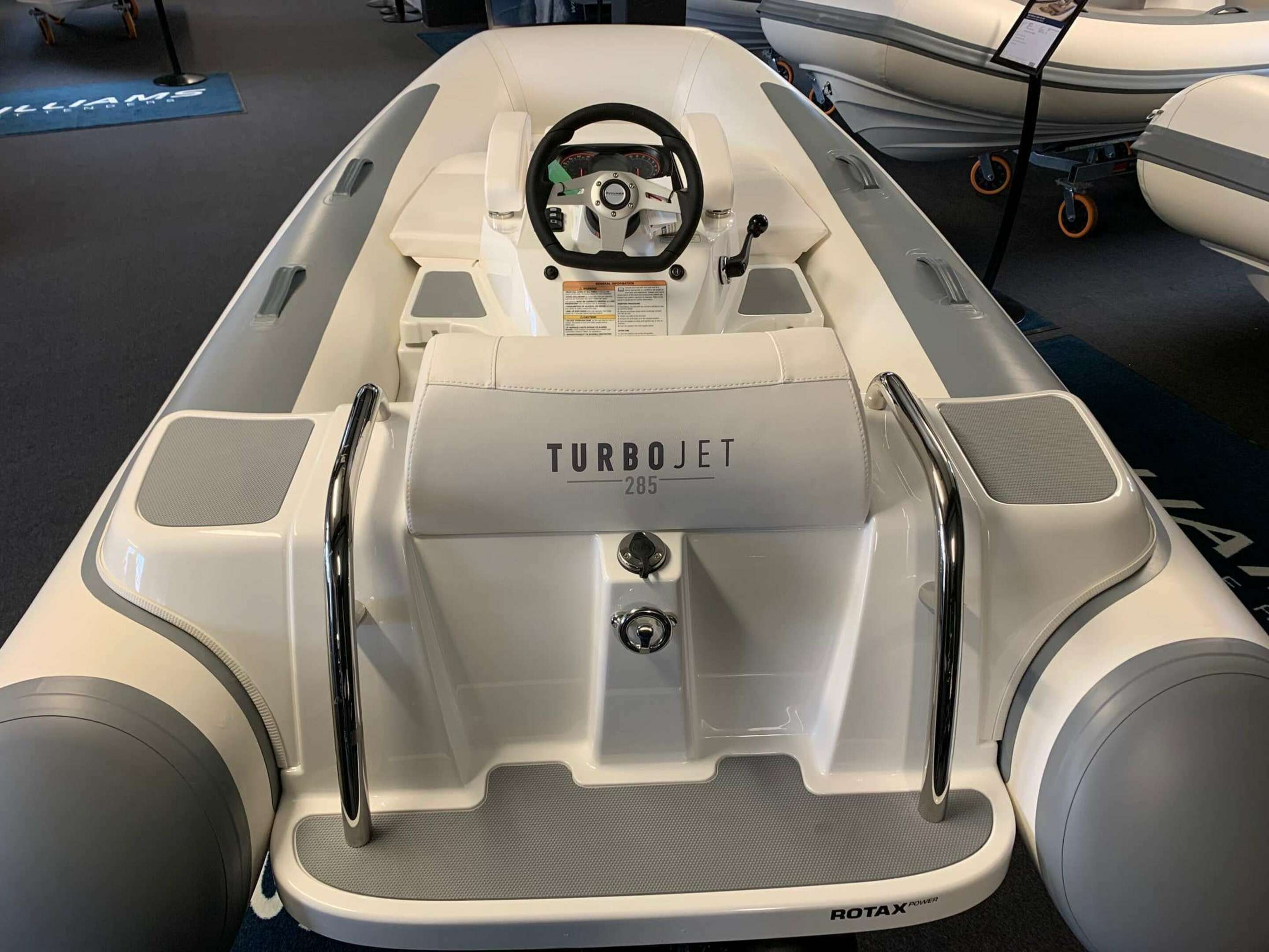 New 2025 Williams TurboJet 285. 90HP Rotax 903 BRP 3 Cylinder engine. Specification includes: Standard Grey & White Tube / White Upholstery / Under-seat storage / 12v DC socket / Sealed upholstered seating (removable) / Sports boat hull shape / Piped deck drains / Automatic fire extinguisher / Speedometer (GPS) / RPM gauge with digital hour meter / Fuel gauge / Single lever throttle/Shift control / Plug in navigation lights (Port/Starboard/Running) / Stainless steel rear handles / Forward seat neoprene/Fabric grab handles / Engine flushing attachment / Bow U Bolt / Four lifting pad-eyes / Ski eye / Two rear tie down points / Automatic bilge pump / Bilge blower / Battery isolator / Tube repair kit / Footpump (2 Stage) / Owner's manual / Fitted fuel tank / Hand-made inflatable tube with rubstrake and grab handles / Folding backrests / BOATS.CO.UK ARE THE UK'S DEALERSHIP FOR WILLIAMS PERFORMANCE JET TENDERS. WE SPECIALIZE IN NEW AND PRE-OWNED WILLIAMS. WE CAN PART EXCHANGE AND BUY OUTRIGHT. Contact or email Darren@Boats.co.uk on 01702258885 for more information.. A nimble tender that defies its size, the Turbojet 285 is designed to easily fit into the tender garage or bathing platform of most 12m to 16m (39ft to 52ft) yachts. It will take you smoothly to the quayside for supplies or a leisurely bite to eat. But open up the throttle and she'll show you a different side. The sports hull and Rotax engine come into their own, carving tight circles or going flat out in secure straight lines for waterskiing bliss. BOATS.CO.UK ARE THE UK'S DEALERSHIP FOR WILLIAMS PERFORMANCE JET TENDERS. WE SPECIALIZE IN NEW AND PRE-OWNED WILLIAMS. WE CAN PART EXCHANGE AND BUY OUTRIGHT. Contact or email Darren@Boats.co.uk on 01702258885 for more information..